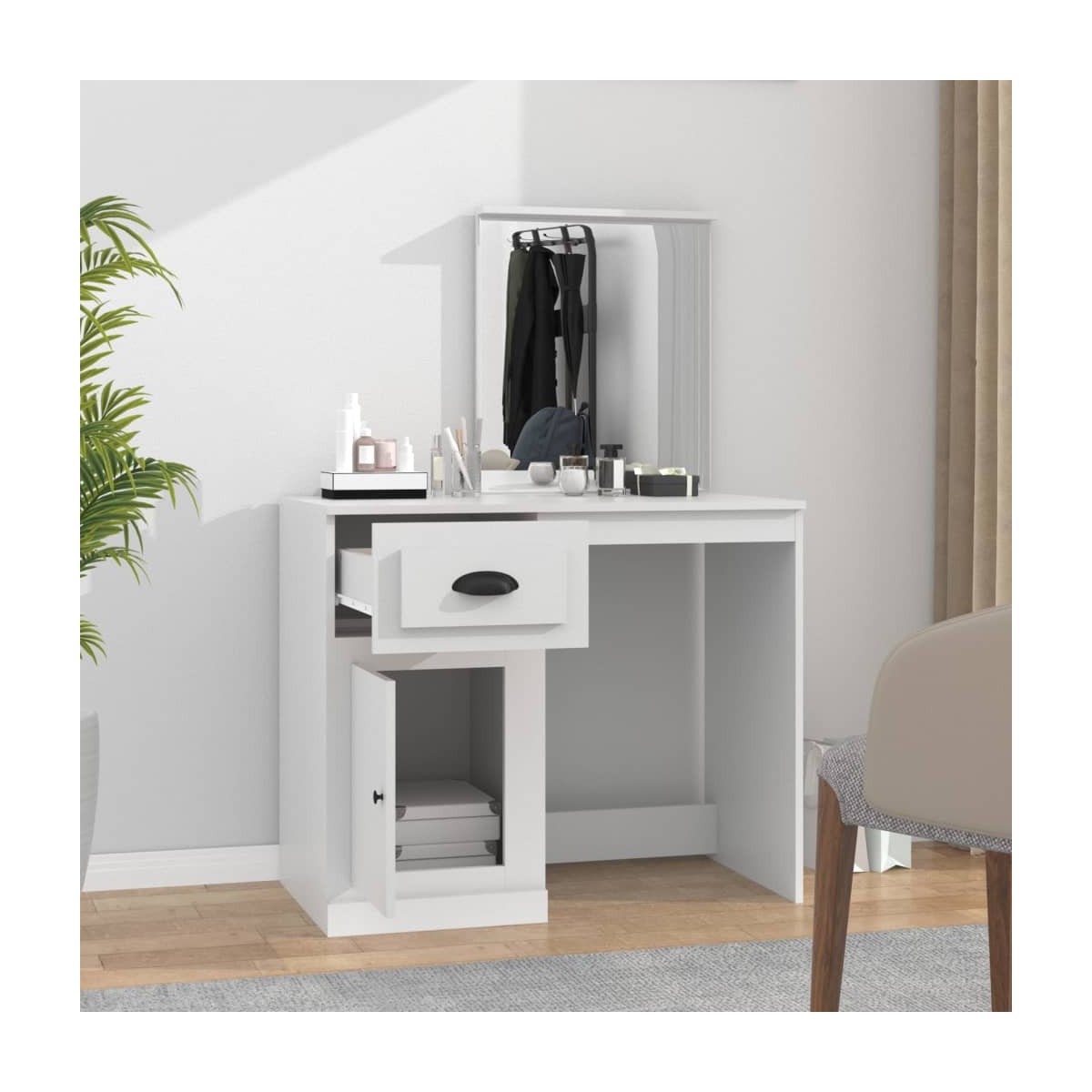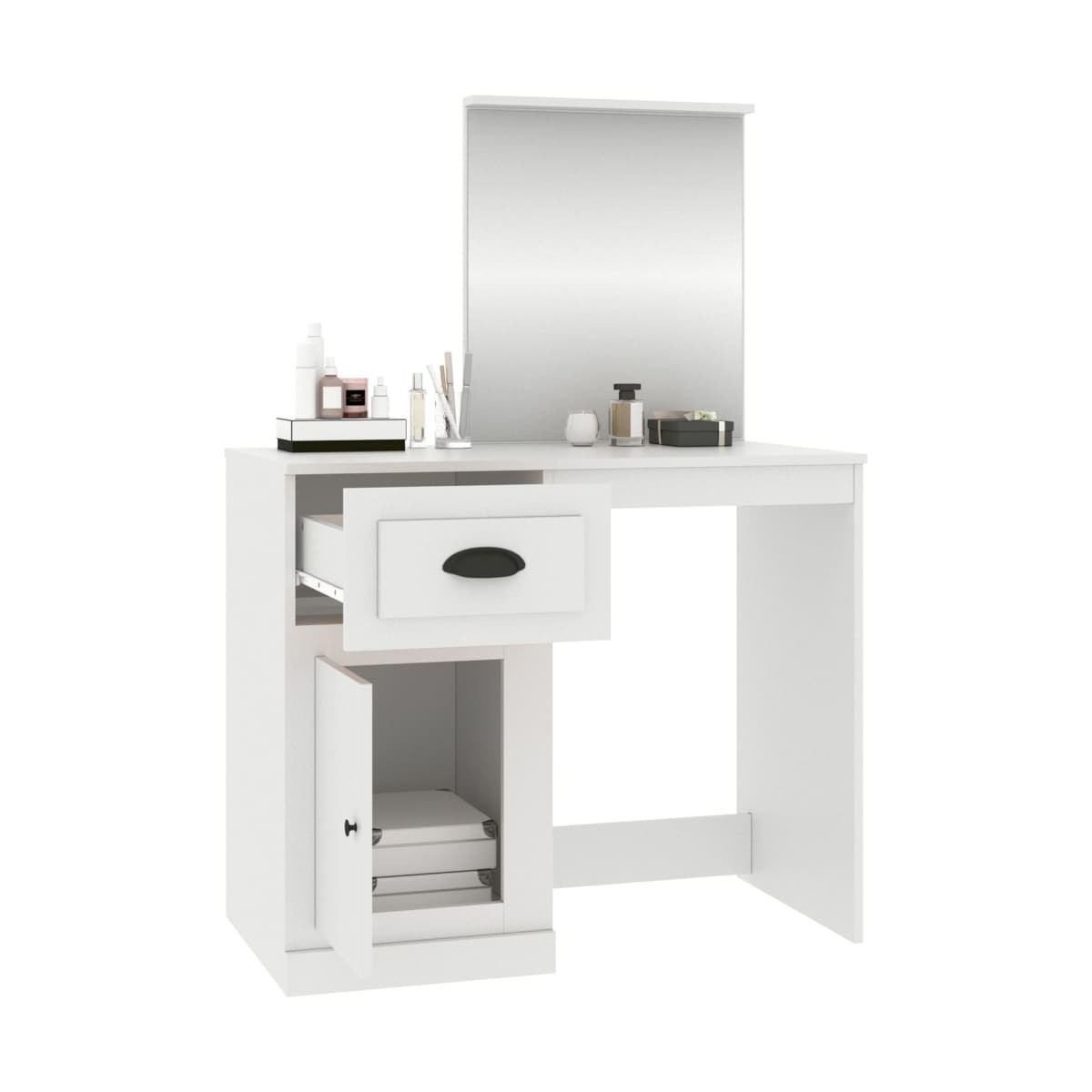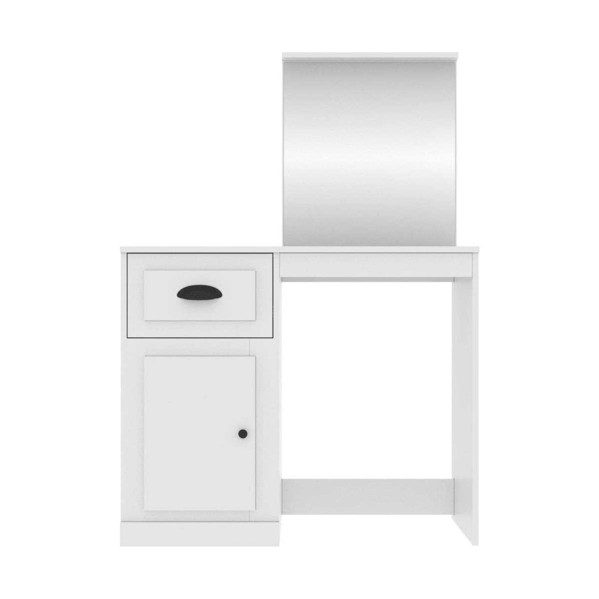 Con unas líneas rectas y elegantes y una forma asimétrica repleta de originalidad, ¡este tocador atraerá todas las miradas, sin duda! Material duradero: La madera contrachapada tiene una calidad excepcional, con una superficie lisa y también cuenta con fuerza, estabilidad y resistencia a la humedad.Espejo de tocador: La mesa tocador con espejo es perfecta para tu rutina diaria de belleza. ¡El espejo te permite cuidar la piel y maquillarte!Amplio espacio de almacenaje: La mesa tocador ofrece un amplio espacio para acceder fácilmente al maquillaje, las joyas y las cosas básicas del día a día. Información útil:Para facilitar al máximo el montaje, cada producto se entrega con un manual. Advertencia: Para evitar que vuelque, este producto debe usarse con el dispositivo de fijación a la pared incluido.