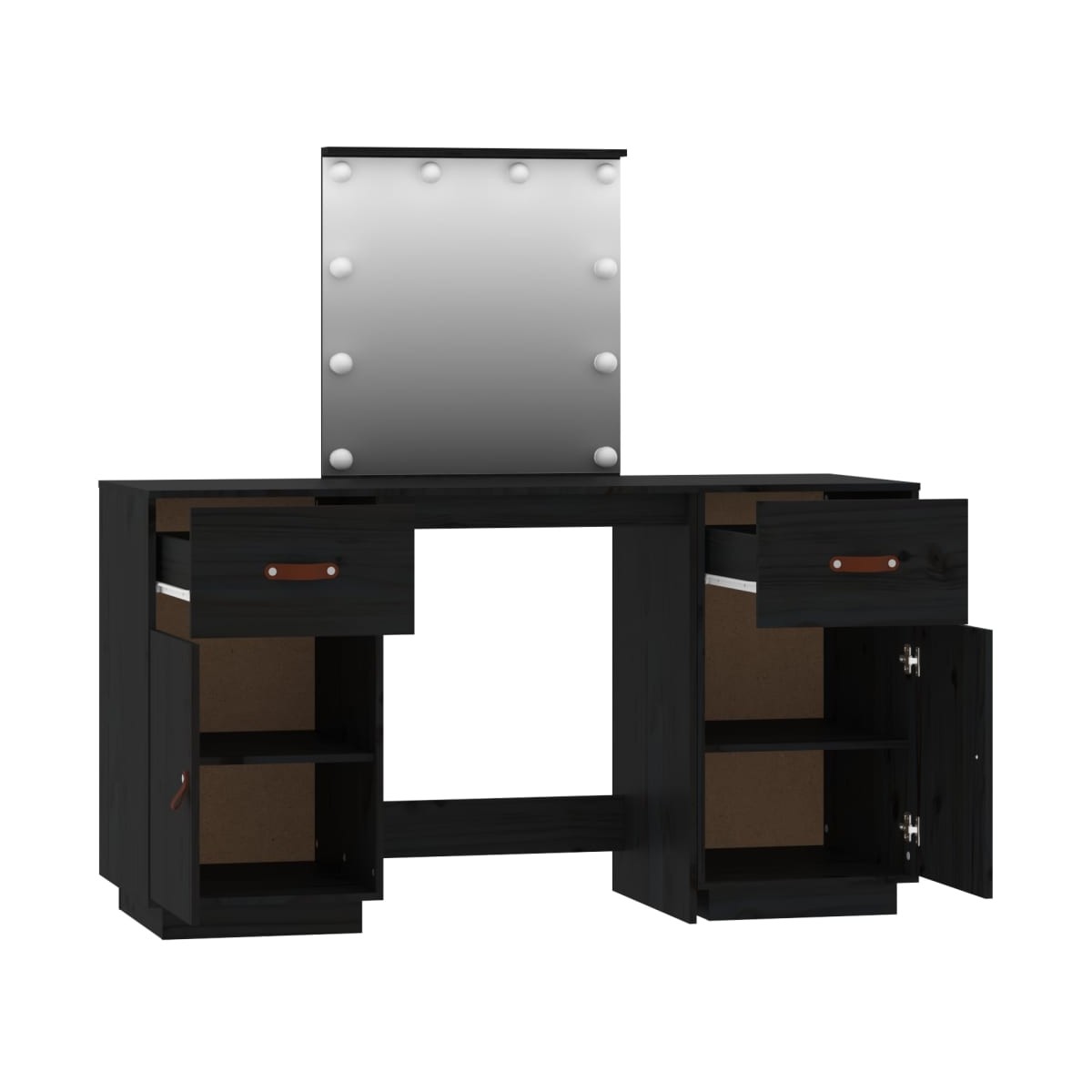 Este moderno conjunto de tocador de madera con LED es un excelente aporte para la decoración del dormitorio. ¡También mantiene a mano el maquilaje! Madera de pino maciza: La madera de pino maciza es un bonito material natural. La madera de pino tiene vetas rectas, y los nudos dan al material su distintivo aspecto rústico.Amplio espacio de almacenaje: La mesa tocador ofrece un amplio espacio para acceder fácilmente a tu maquillaje, bisutería y básicos para el día a día.Espejo utilitario: El hermoso espejo incluido proporciona una visión clara para el maquillaje y añade un toque elegante a la mesa de tocador.Luz LED: El tocador tiene bombillas LED con USB, que se pueden cambiar fácilmente de modo blanco cálido a frío. Las bombillas LED que hay alrededor del espejo iluminarán tu belleza.Práctica puerta: Mantén tus objetos esenciales libres de polvo escondiéndolos detrás de la puerta de este tocador de maquillaje. Advertencia:Para evitar el vuelco, este producto debe usarse con el dispositivo provisto para fijarlo a la pared. Nota:Cada producto viene con un manual de montaje en la caja para facilitar el montaje.