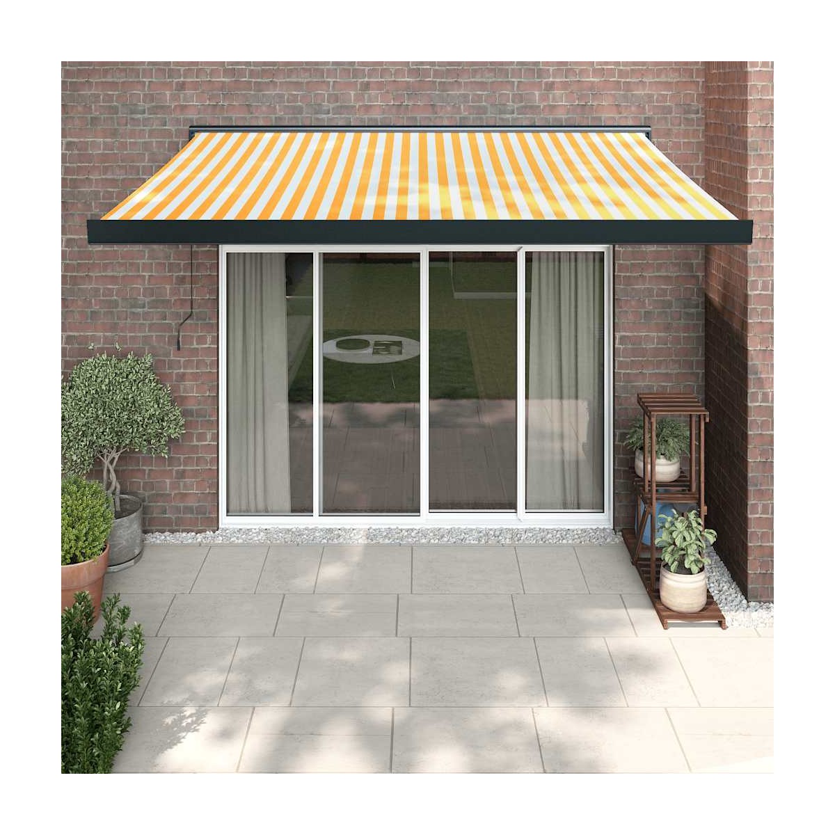 ¡Disfruta de una bebida fresca, un sabroso manjar o una buena conversación con amigos en la terraza mientras te relajas debajo de este toldo retráctil! Material duradero: La estructura del toldo de patio está hecha de aluminio con recubrimiento en polvo, por lo que es resistente y duradero. La tela con tratamiento superficial de PU es resistente a los rayos UV. Protegerá a tu familia o tus invitados de los rayos UV y del sol deslumbrante.Toldo retráctil: El toldo para ventanas es retráctil, para cumplir con diferentes requisitos. Al abrirlo, proporciona una buena sombra y, cuando está recogido, tampoco bloquea la vista.Diseño de pared: El toldo retráctil se puede colgar en la pared gracias a los accesorios incluidos. Así, no ocupará espacio en el suelo.Muchos usos: El toldo motorizado posee un diseño sencillo y elegante que encajará en cualquier casa o establecimiento comercial. Sirve para muchos sitios, como balcones, patios, terrazas, restaurantes, cafeterías, tiendas, etc.