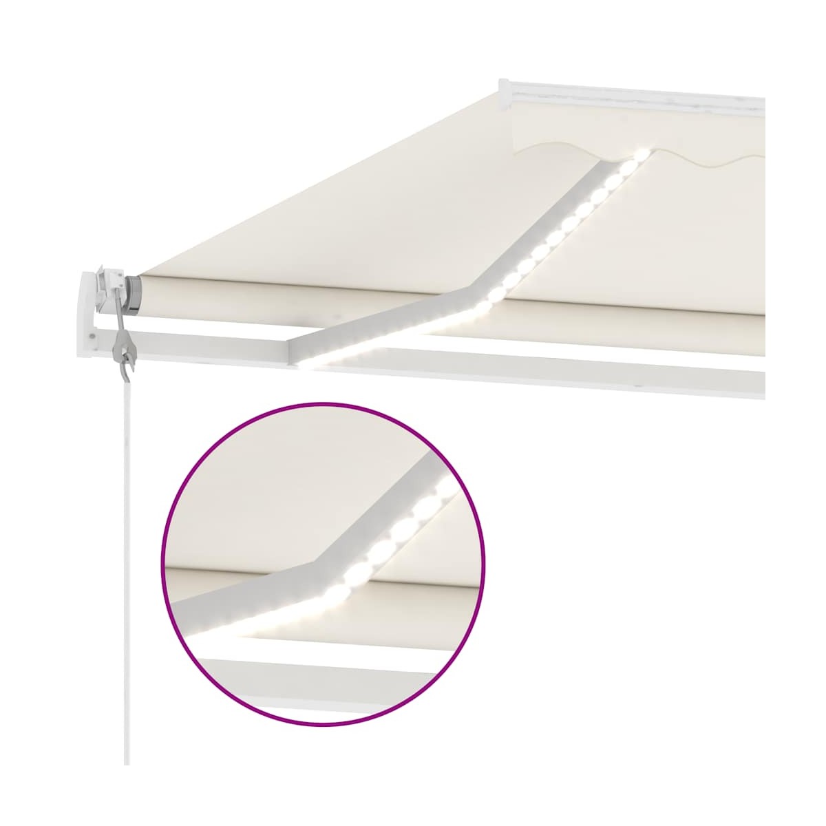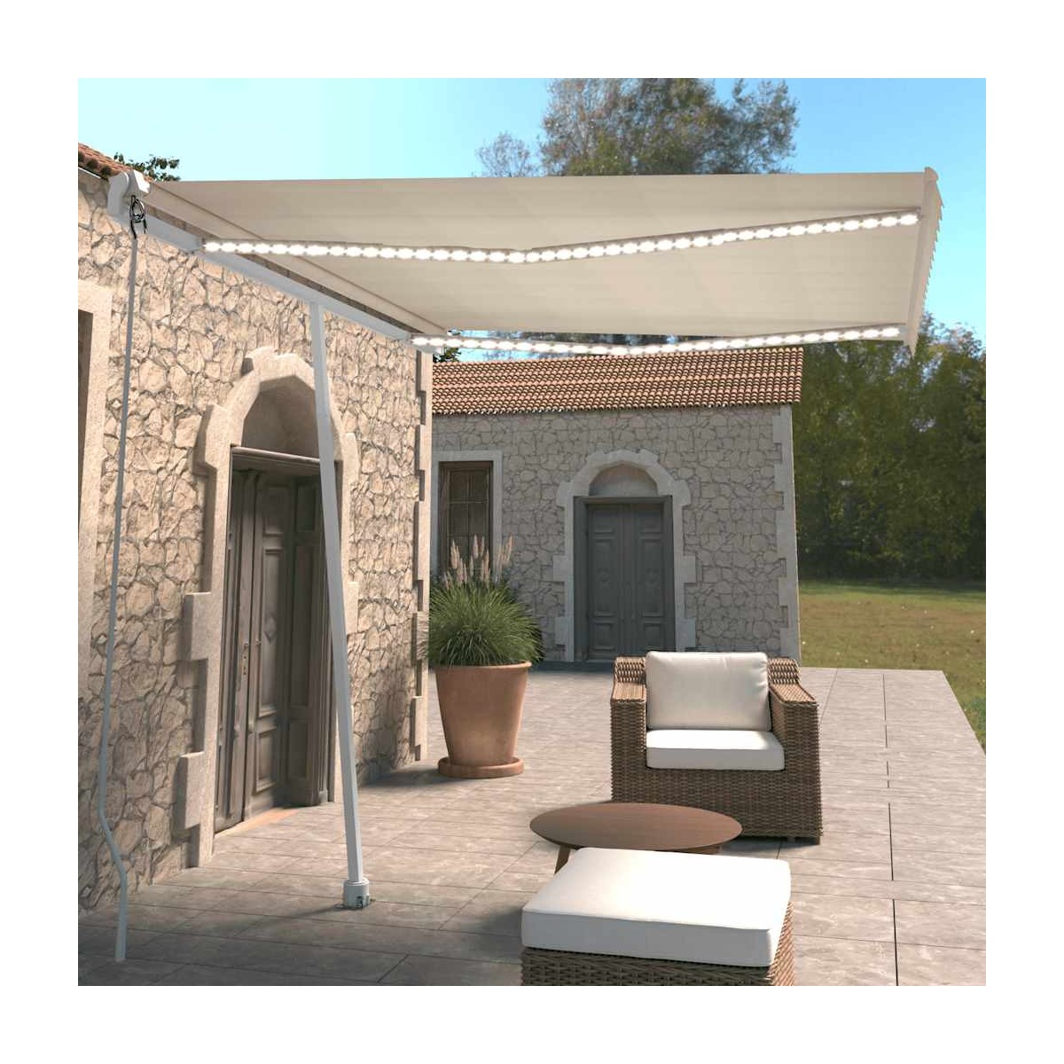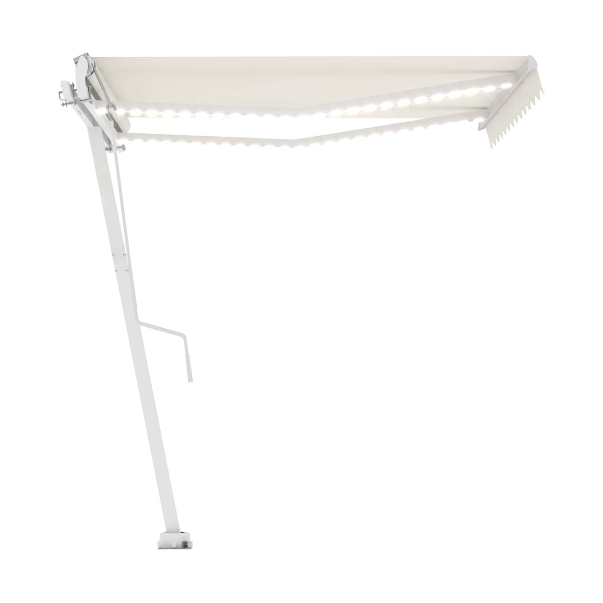 ¡Crea un lugar encantador y fresco en tus espacios exteriores con este toldo retráctil! Este toldo para exteriores está construido con una estructura de aluminio con recubrimiento en polvo resistente a la oxidación, lo que lo hace ligero pero robusto. La tela del toldo independiente está hecha de poliéster de alta densidad con revestimiento de PU, resistente a los rayos UV y al agua. Además, el ángulo y la altura se pueden ajustar según tus preferencias. La robusta base se puede girar 360 grados, lo que proporciona las máximas necesidades de ajuste. Puedes abrir y retraer fácilmente el toldo retráctil automático con el control remoto incluido. Además, la manivela larga puede controlar el toldo del patio sin problemas. También está equipado con un sensor de viento que puede cerrar tu toldo automáticamente en días ventosos. Además, las luces LED proporcionan una iluminación que ahorra energía durante la noche.