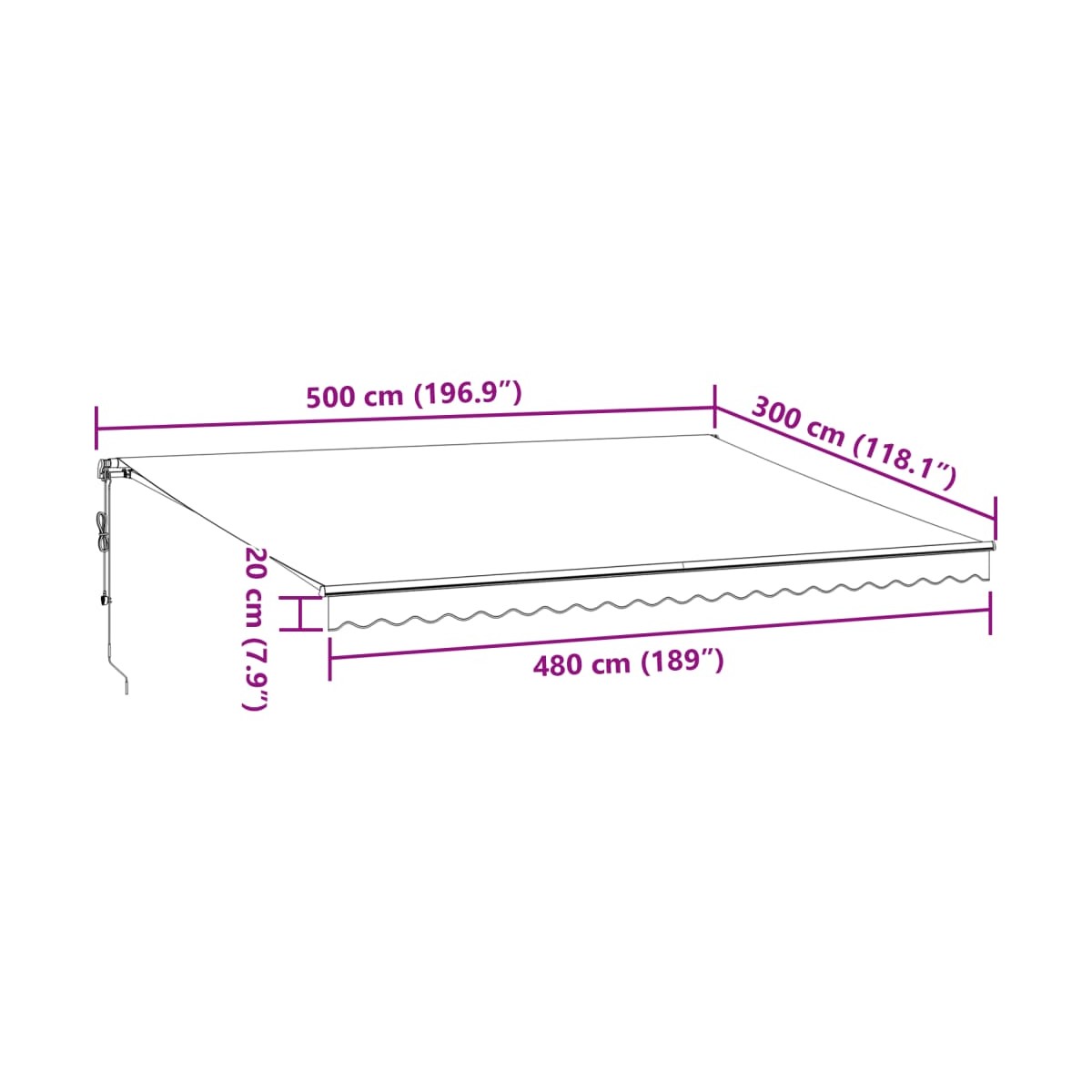 - Tamaño total: 500 x 300 cm (largo x ancho)