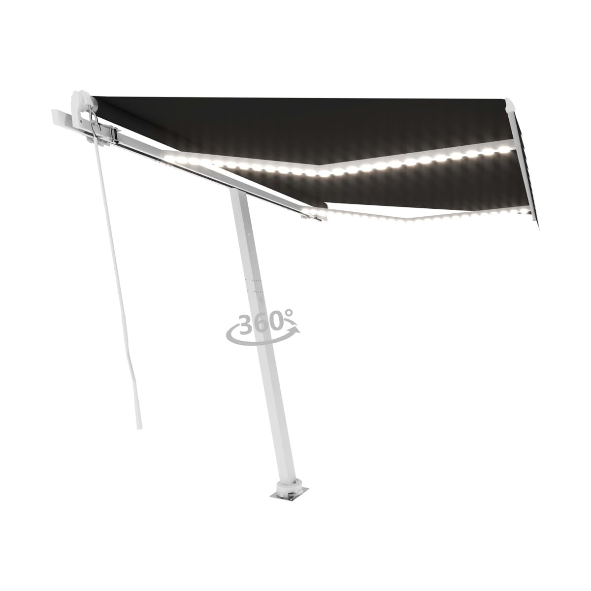 ¡Crea un lugar encantador y fresco en tus espacios exteriores con este toldo retráctil! Este toldo de exterior está construido con un marco de aluminio con recubrimiento en polvo resistente a la oxidación, lo que lo hace ligero pero resistente. La tela del toldo para patio está hecha de poliéster de alta densidad con revestimiento de PU, que es resistente a los rayos UVA y al agua. Además, el ángulo y la altura se pueden ajustar para satisfacer tus necesidades específicas. Puedes abrir y retraer el toldo independiente sin problemas con la manivela larga. Además, las luces LED de energía solar brindan iluminación de bajo consumo durante la noche. La base resistente se puede girar 360 grados, proporcionando las máximas necesidades de ajuste.