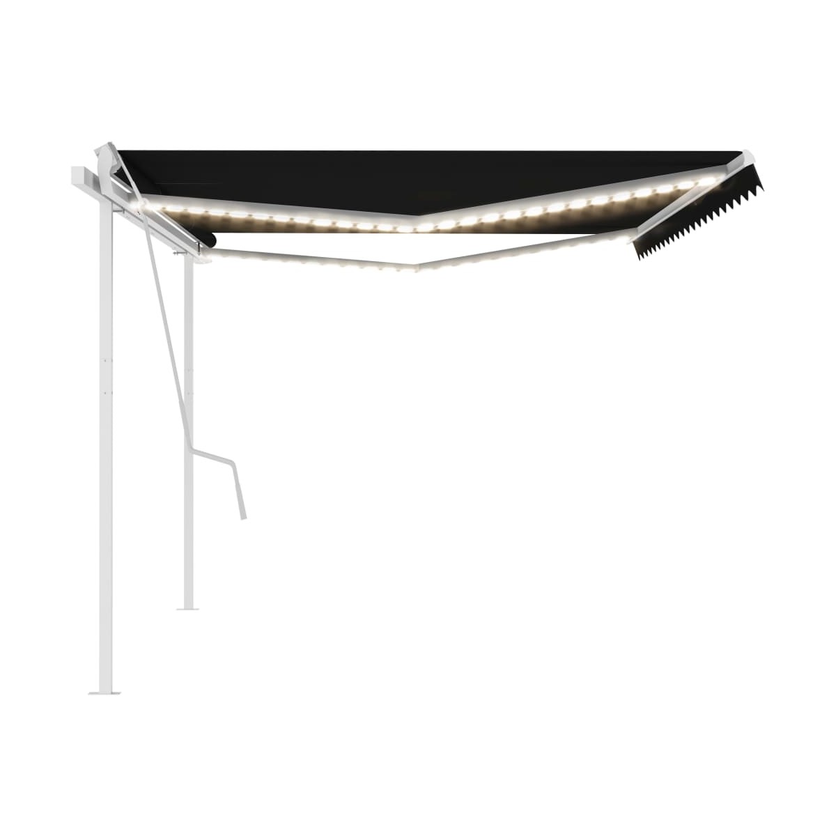 ¡Crea un lugar encantador y fresco en tus espacios exteriores con este toldo retráctil! Este toldo para exteriores está construido con una estructura de aluminio con recubrimiento en polvo resistente a la oxidación, lo que lo hace ligero pero robusto. El fuerte poste de hierro lo hace estable. La tela del toldo para patio está hecha de poliéster de alta densidad con revestimiento de PU, que es resistente a los rayos UVA y al agua. Además, el ángulo y la altura se pueden ajustar para satisfacer tus necesidades específicas. Puedes abrir y retraer el toldo suavemente con la manivela larga. Además, las luces LED que funcionan con energía solar proporcionan una iluminación que ahorra energía durante la noche.