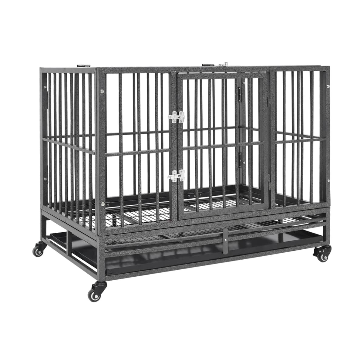 ¡Mantén a tus amigos peludos en un espacio cerrado seguro y cómodo con esta jaula para perros! Esta jaula para mascotas está equipada con cuatro ruedas para facilitar el movimiento. Dos de las ruedas se pueden bloquear para evitar movimientos accidentales. Este recinto para cachorros cuenta con una puerta con dos pestillos de seguridad para facilitar el acceso. Puedes limpiar fácilmente la jaula con su bandeja desmontable. Además, la robusta estructura de acero proporciona una ventilación y visibilidad óptimas, lo que le brinda a tu perro un ambiente cómodo y fiable.