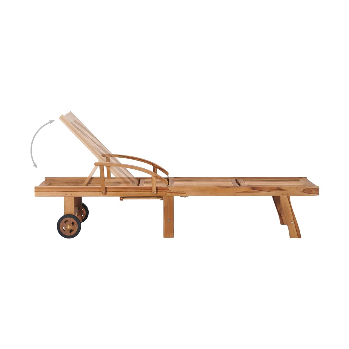 Con nuestro tumbona de madera, siempre tendrás un lugar cómodo para relajarte en tu patio o en tu jardín. La estructura de madera única es acogedora y exuda un encanto natural. Hecha con madera dura de teca muy duradera, este mueble de teca ha sido curado, secado en horno y luego lijado finamente para darle una apariencia muy suave. La madera de teca es conocida por su excepcional resistencia a la fuerza y al clima, por lo que es mucho más adecuada para muebles de jardín que cualquier otro tipo de madera. La madera de teca es la elección perfecta si deseas adquirir un mueble de jardín duradero. Equipada con 2 ruedas, la tumbona de exterior se puede desplazar fácilmente. El respaldo puede ajustarse en 3 posiciones, desde sentarse completamente erguido hasta acostarse completamente plano. El reposapiés también es ajustable para mayor comodidad. El asiento y el respaldo ofrecen una gran sujeción y comodidad, y dos reposabrazos proporcionan un lugar para descansar los brazos. Además, la mesa auxiliar te permiten tener tu teléfono, gafas de sol, bebidas y otros artículos pequeños a tu alcance. Además, el cojín incluido es más que un complemento práctico; también tiene una función decorativa. Nota: Para prolongar la vida de tus muebles de exterior, te recomendamos que los protejas con una funda impermeable.