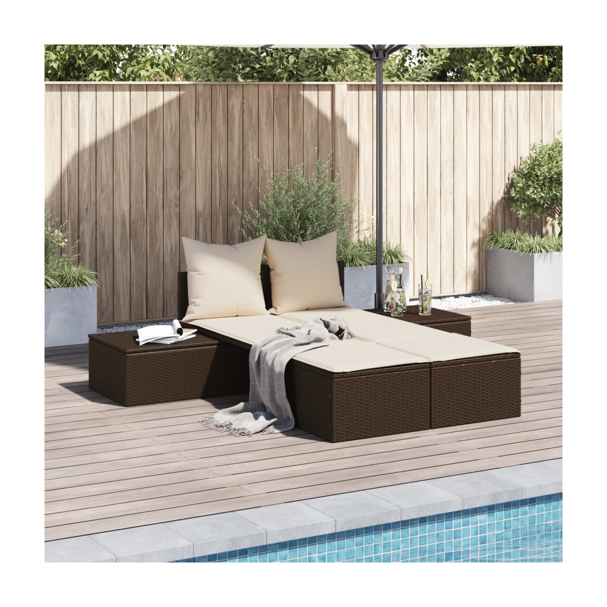 ¡Relájate y disfruta del aire libre en esta cómoda tumbona doble! Material duradero: El ratán PE, también conocido como ratán sintético, es un material sintético resistente y de bajo mantenimiento que se parece al ratán natural. Es ligero, fácil de limpiar y se usa comúnmente para muebles de exterior debido a su durabilidad y propiedades resistentes a la intemperie. Diseño modular: Este conjunto de muebles de exterior tiene un diseño modular, por lo que es completamente flexible y fácil de mover, para que puedas crear una disposición de muebles de exterior personalizada. Experiencia de asiento cómoda: Estos muebles de exterior, completos con cojines acolchados gruesos, ofrecen una experiencia de asiento cómoda. Funda desenfundable y lavable: Estos cojines de asiento cuentan con fundas desenfundables para facilitar el lavado y mantenimiento. Estructura robusta y estable: La estructura de acero con recubrimiento en polvo garantiza que el mueble de jardín sea resistente y estable para usarlo a diario al aire libre. Información útil:Para asegurarte de que tus muebles de exterior se mantengan hermosos, recomendamos protegerlos con una funda impermeable.
