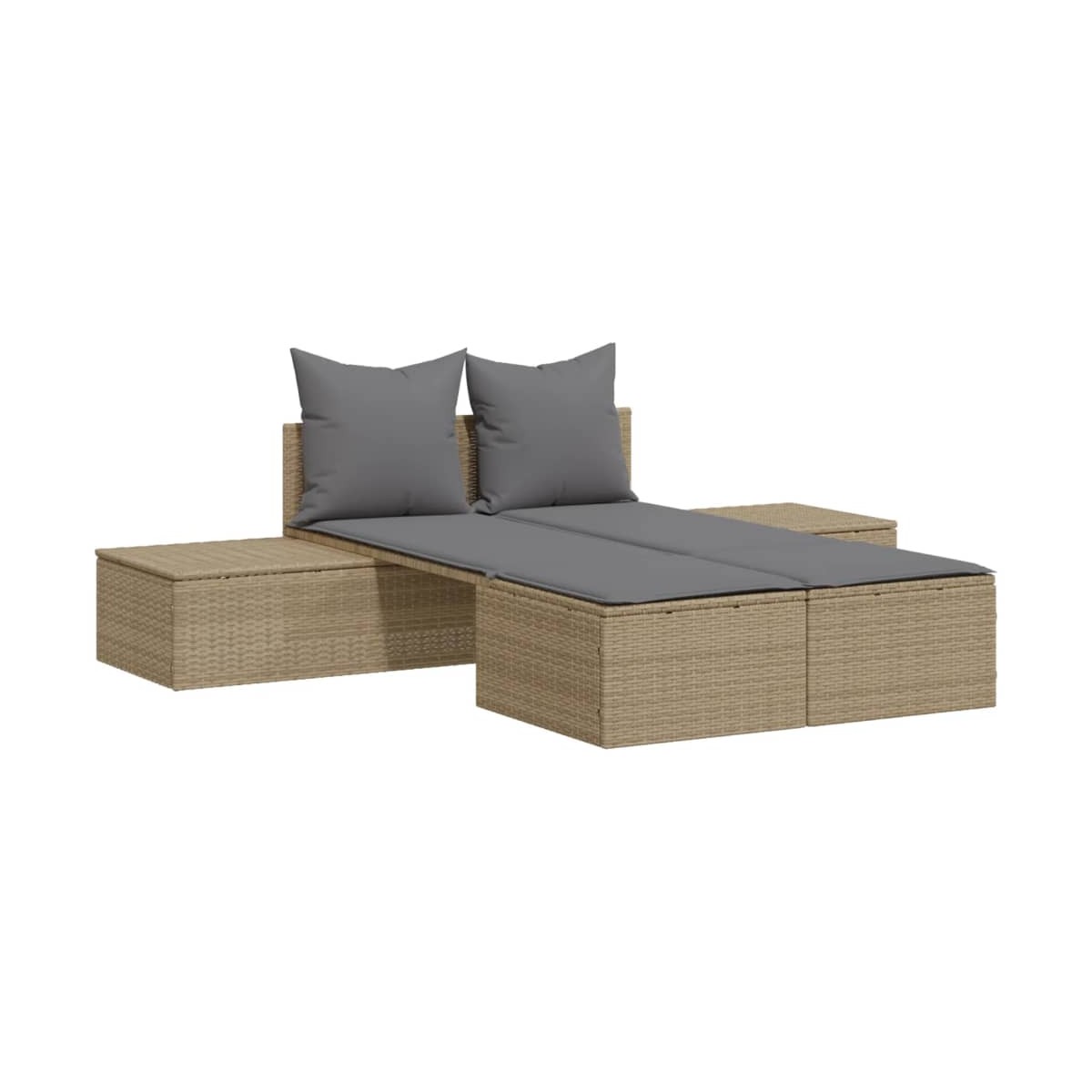 ¡Relájate y disfruta del aire libre en esta cómoda tumbona doble! Material duradero: El ratán PE, también conocido como ratán sintético, es un material sintético resistente y de bajo mantenimiento que se parece al ratán natural. Es ligero, fácil de limpiar y se usa comúnmente para muebles de exterior debido a su durabilidad y propiedades resistentes a la intemperie. Diseño modular: Este conjunto de muebles de exterior tiene un diseño modular, por lo que es completamente flexible y fácil de mover, para que puedas crear una disposición de muebles de exterior personalizada. Experiencia de asiento cómoda: Estos muebles de exterior, completos con cojines acolchados gruesos, ofrecen una experiencia de asiento cómoda. Funda desenfundable y lavable: Estos cojines de asiento cuentan con fundas desenfundables para facilitar el lavado y mantenimiento. Estructura robusta y estable: La estructura de acero con recubrimiento en polvo garantiza que el mueble de jardín sea resistente y estable para usarlo a diario al aire libre. Información útil:Para asegurarte de que tus muebles de exterior se mantengan hermosos, recomendamos protegerlos con una funda impermeable.