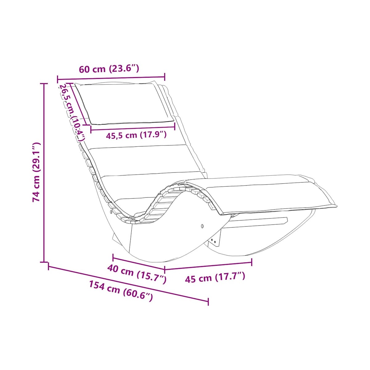 - Dimensiones totales: 154 x 60 x 74 cm (largo x ancho x alto)