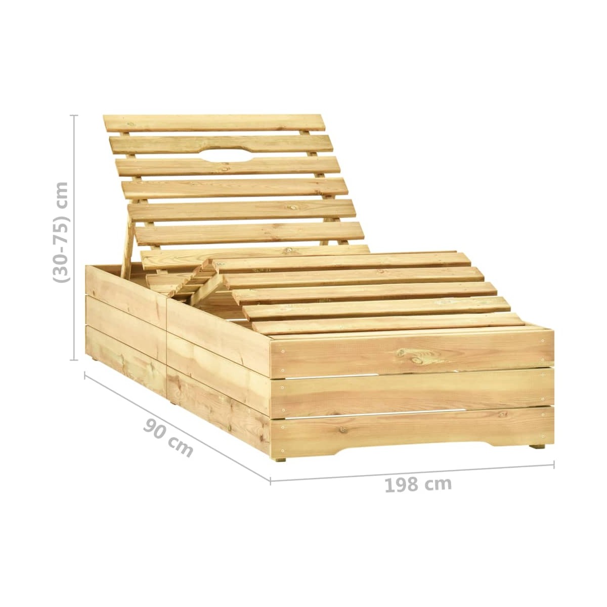 - Material de la tumbona: Madera de pino, impregnada en verde