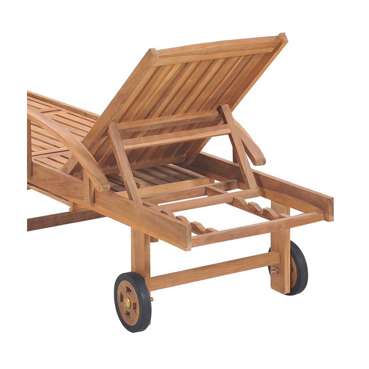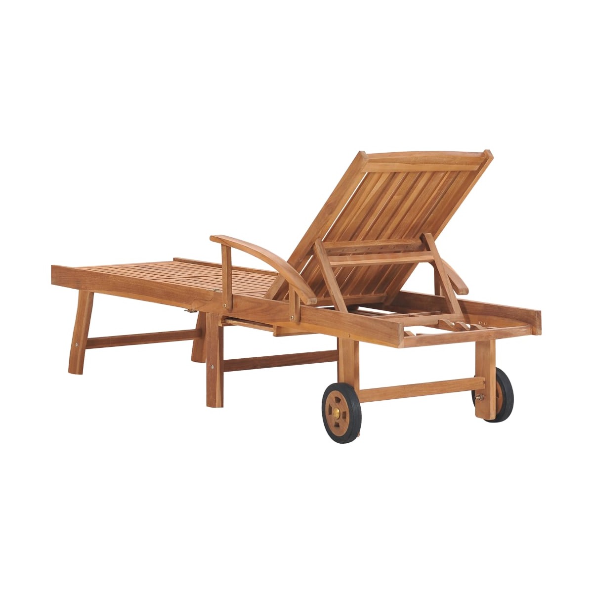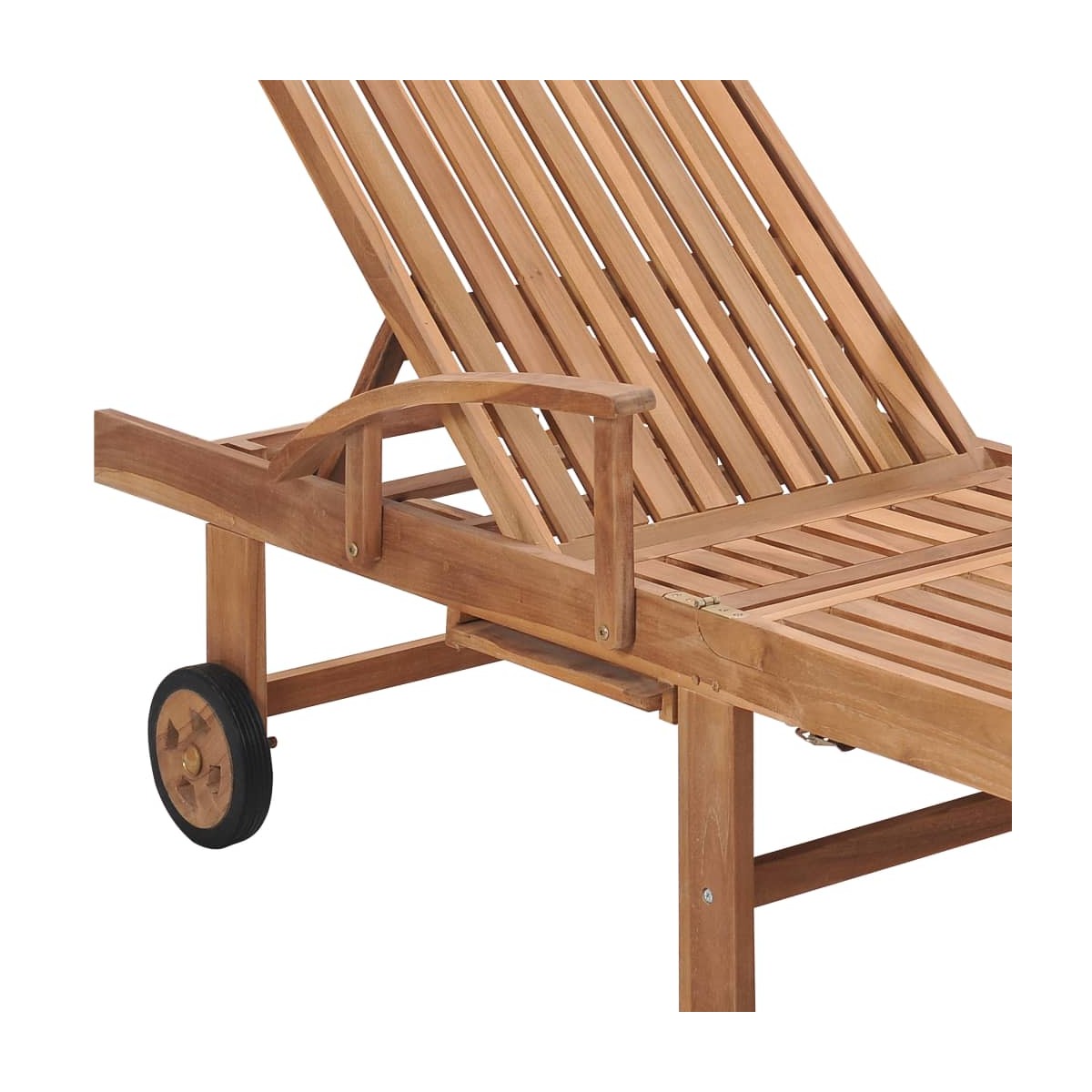 Esta clásica tumbona de madera tiene un atractivo diseño con listones y añadirá un encantador toque rústico a tu jardín, patio, piscina o zona al aire libre. Hecha con madera dura de teca muy duradera, este mueble de teca ha sido curado, secado en horno y luego lijado finamente para darle una apariencia muy suave. La madera de teca es conocida por su excepcional resistencia a la fuerza y al clima, por lo que es mucho más adecuada para muebles de jardín que cualquier otro tipo de madera. La madera de teca es la elección perfecta si deseas adquirir un mueble de jardín duradero. La cama está equipada con 2 ruedas, que se pueden mover fácilmente. El respaldo puede ajustarse en 4 posiciones, desde sentarse completamente erguido hasta acostarse completamente plano. Los listones del asiento y respaldo ofrecen una gran sujeción y comodidad, y dos reposabrazos proporcionan un lugar para descansar los brazos. Además, el cojín incluido es más que un complemento práctico; también tiene una función decorativa. Nota: Para prolongar la vida de tus muebles de exterior, te recomendamos que los protejas con una funda impermeable.
