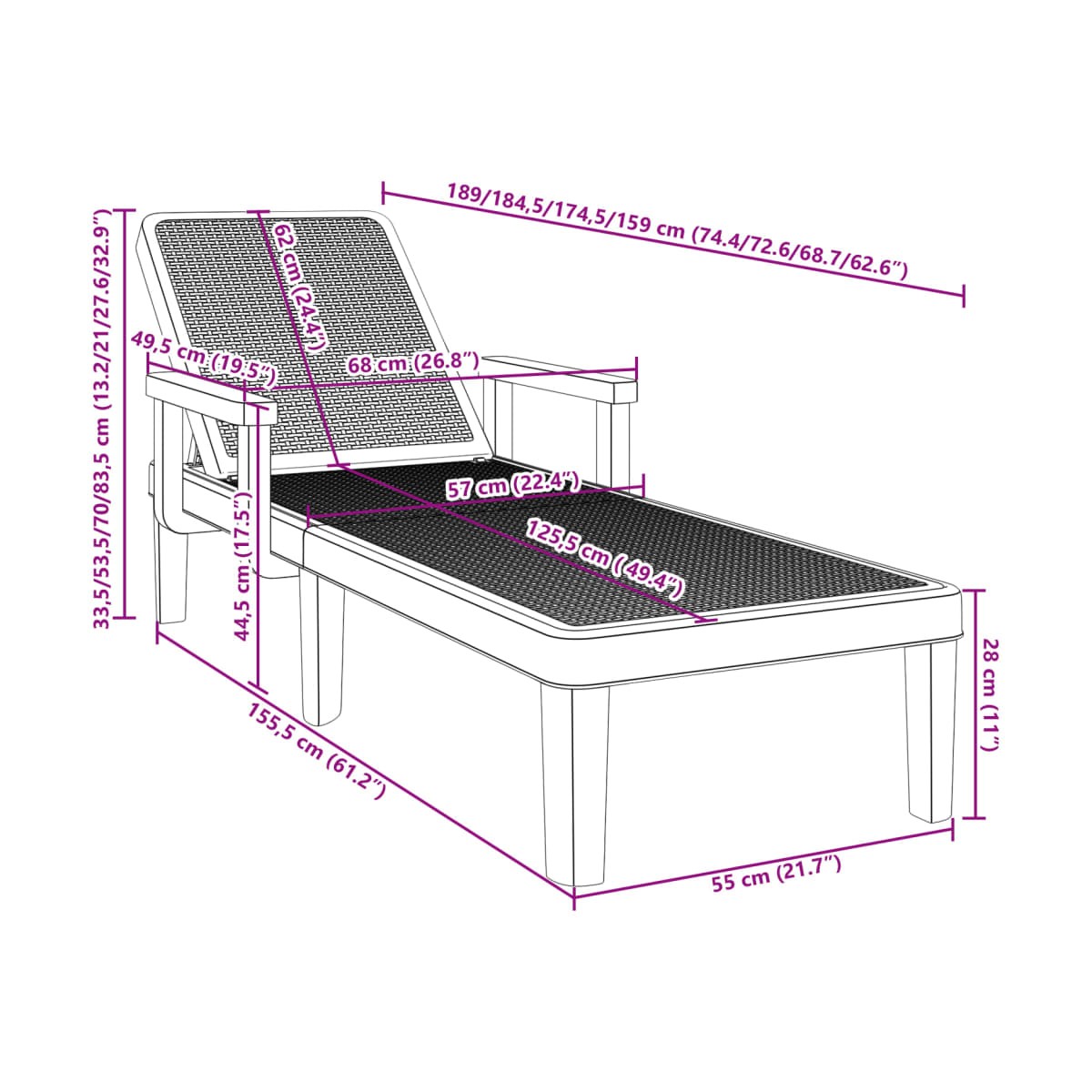 Esta cómoda tumbona con un respaldo regulable te permirte sentarte o tumbarte, por lo que es perfecta para descansar bajo el sol. Material duradero: El polipropileno (PP) es un plástico popular y también uno de los materiales más utilizados en muebles de exterior. Es ligero, duro y resistente a los impactos. Además, la resistencia a los rayos UV y a la intemperie facilita su limpieza y mantenimiento.Respaldo ajustable: Este mueble de exterior cuenta con un respaldo con 4 posiciones ajustables, con lo que puedes encontrar fácilmente la posición más cómoda y adecuada para relajarte.Fácil de mover: Puedes reubicar la tumbona con facilidad gracias a su ligero diseño. Información útil:Para asegurarte de que tus muebles de exterior se mantengan hermosos, recomendamos protegerlos con una funda impermeable.