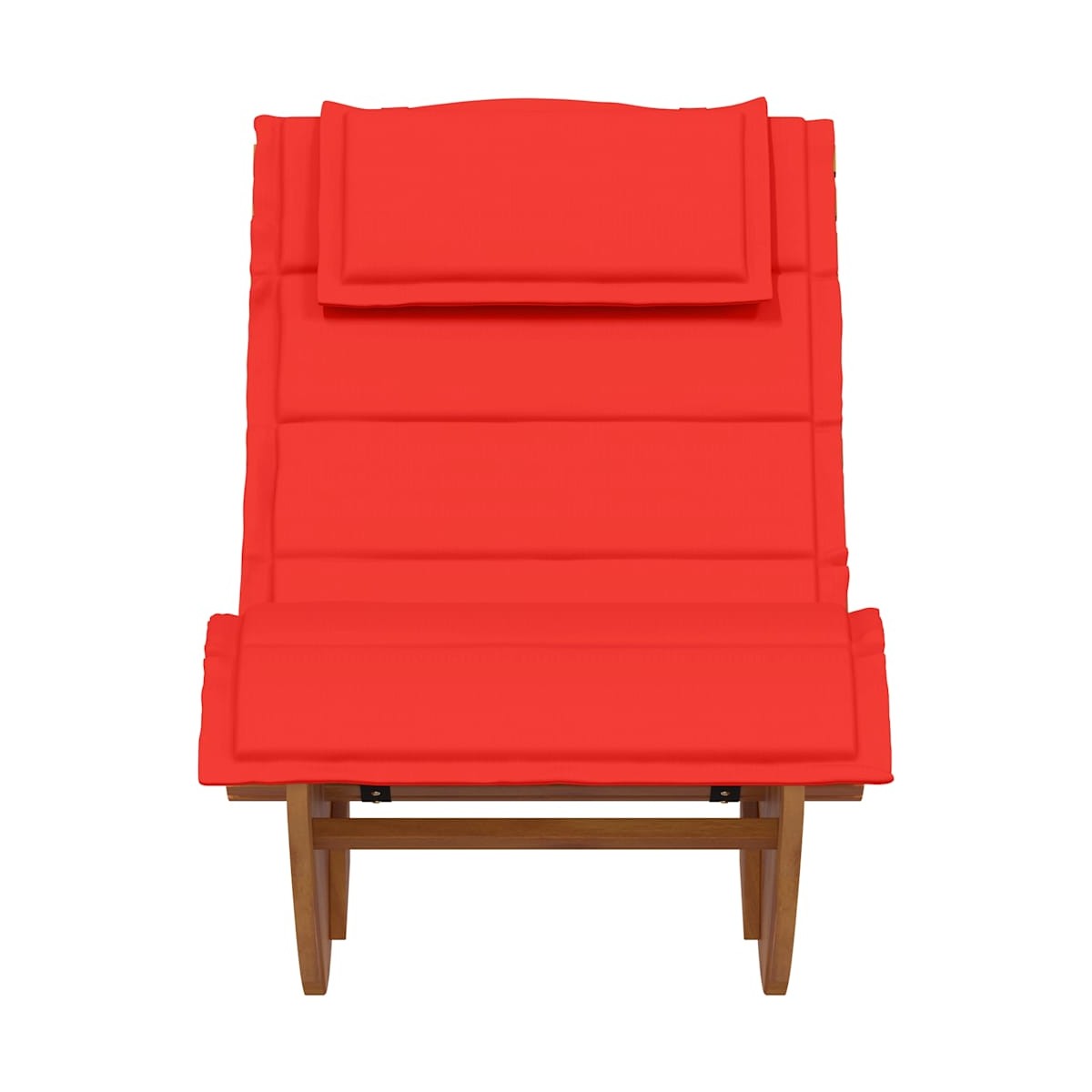 Esta tumbona mecedora de madera es ideal para tomar el sol y relajarse cerca de la piscina, en el patio o en el jardín. Robusto y estable: La madera maciza de acacia es conocida por su resistencia y durabilidad. Sus diversos colores y patrones de vetas únicos le dan una apariencia atractiva. Con excelente estabilidad y resistencia a la intemperie, es ideal para fabricar muebles de interior y exterior.Balanceo seguro y relajante: puede balancearse hacia adelante y hacia atrás suavemente en esta tumbona de jardín para relajarse durante su tiempo libre. Los topes inferiores evitan que la mecedora de madera se vuelque, lo que crea una experiencia de balanceo segura para usted.Diseño ergonómico: La tumbona cuenta con una superficie de descanso diseñada ergonómicamente que se adapta a los contornos de su cuerpo, lo que le permite relajarse con la máxima comodidad.Buena ventilación y prevención de encharcamientos: El diseño de rejilla favorece un flujo de aire óptimo y evita eficazmente la acumulación de agua, lo que garantiza un asiento seco y cómodo.Experiencia de asiento cómoda: Estos muebles de exterior, completos con cojines acolchados gruesos, ofrecen una experiencia de asiento cómoda. Información útil:Para asegurarte de que tus muebles de exterior se mantengan hermosos, recomendamos protegerlos con una funda impermeable.