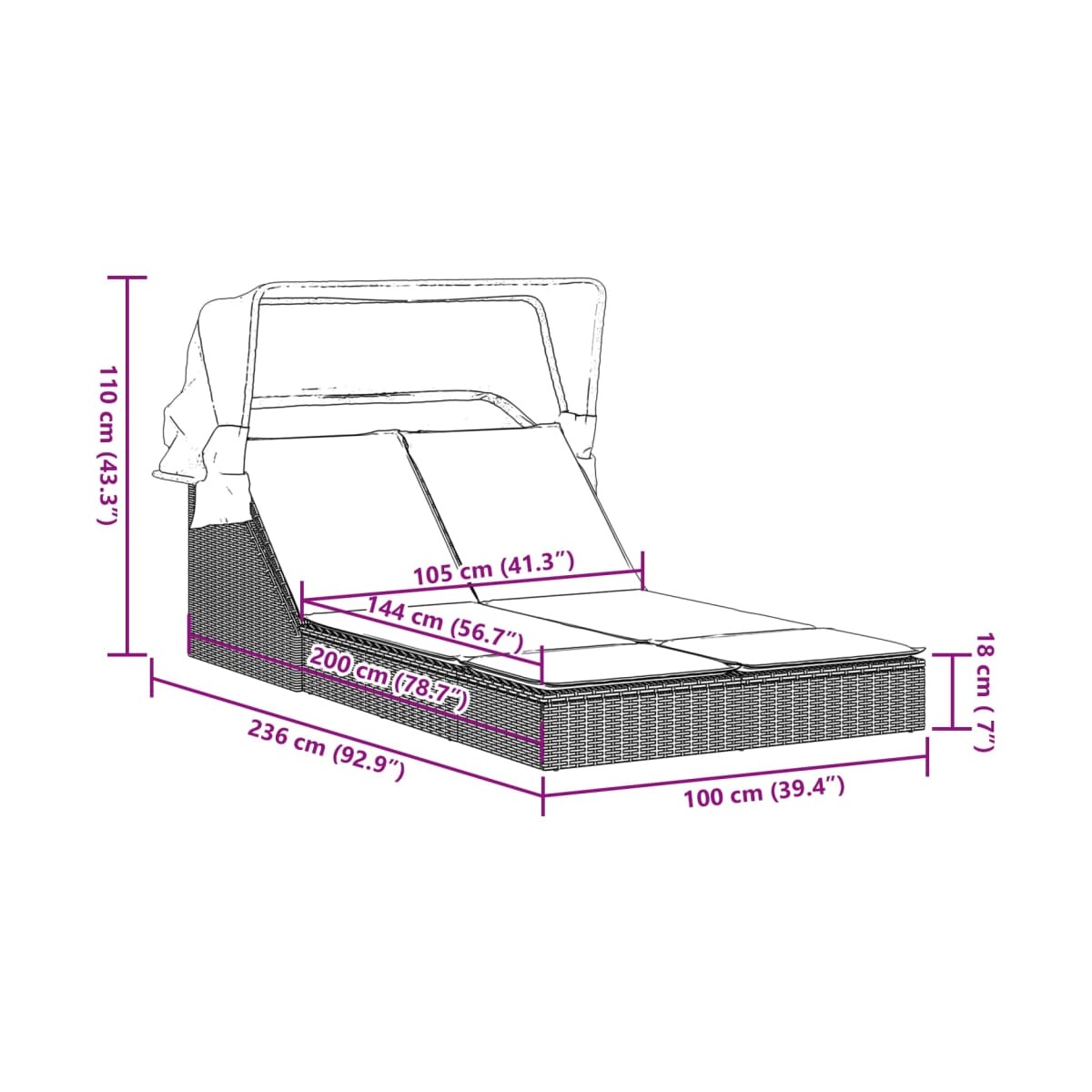 - Dimensiones del asiento: 100 x 200 cm (ancho x profundo)