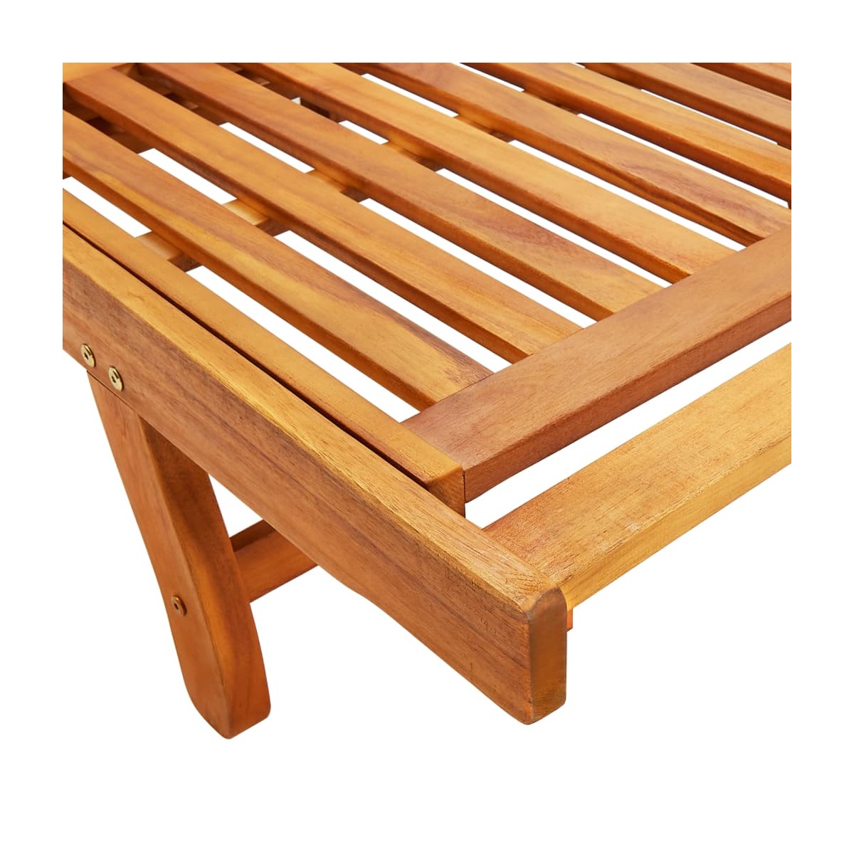 Con esta moderna tumbona de madera maciza de acacia, siempre puedes encontrar un lugar cómodo para relajarte en tu patio o jardín. Esta tumbona de jardín está fabricada en madera maciza de acacia, por lo que es robusta y estable. La tumbona de jardín se puede mover fácilmente por la casa gracias a las 2 ruedas equipadas. El respaldo y los reposapiés son ajustables, y también puedes bloquear la tumbona de madera en la posición que quieras. La mesa extraíble te permite colocar el teléfono, las gafas de sol, las bebidas y otros artículos pequeños. El cojín agrega un plus de comodidad mientras descansas. Cada cojín cuenta con dos juegos de cuerdas para fijarlo firmemente en la tumbona.