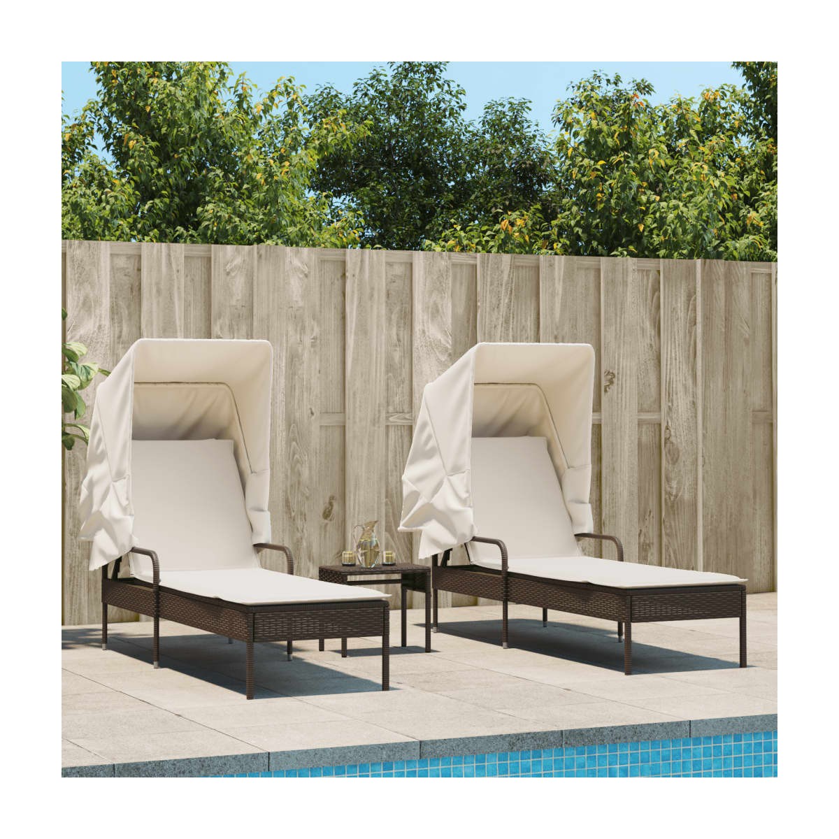 ¡Relájate y disfruta del aire libre en estas cómodas tumbonas! Material duradero: El ratán PE, también conocido como ratán sintético, es un material sintético resistente y de bajo mantenimiento que se parece al ratán natural. Es ligero, fácil de limpiar y se usa comúnmente para muebles de exterior debido a su durabilidad y propiedades resistentes a la intemperie.Respaldo ajustable: Este mueble de exterior cuenta con un respaldo con 4 posiciones ajustables, con lo que puedes encontrar fácilmente la posición más cómoda y adecuada para relajarte.Capota retráctil: Gracias al toldo retráctil, podrás crear un ambiente exterior fresco y agradable durante todo el día.Práctica mesita de té: Este mueble de exterior cuenta con una mesita de té, que ofrece un lugar práctico para guardar tus objetos esenciales al alcance de la mano.Experiencia de asiento cómoda: Este mueble de exterior, completo con un cojín acolchado grueso, ofrece una experiencia de asiento cómoda. Información útil:Para asegurarte de que tus muebles de exterior se mantengan hermosos, recomendamos protegerlos con una funda impermeable.