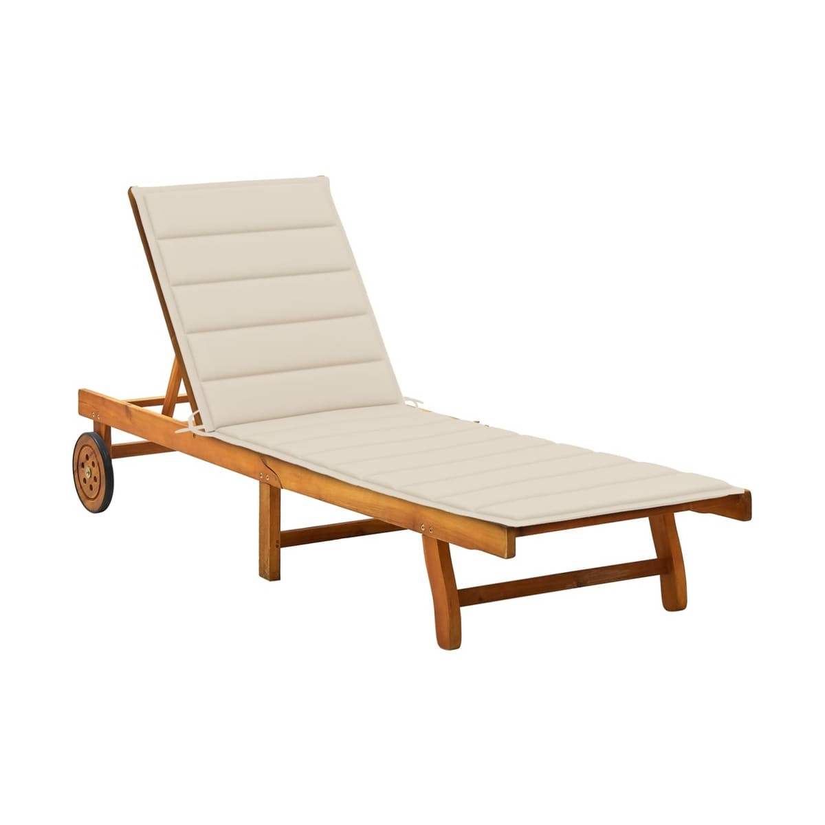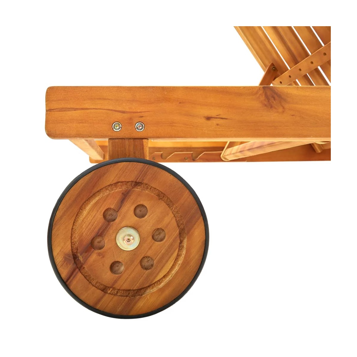 ¡Relájate y descansa en tu jardín o patio en esta cómoda tumbona de madera! Puedes pasar una tarde relajante en tu jardín. Es perfecta para la piscina, el balcón, el jardín, etc. Esta tumbona de jardín está hecha de madera maciza de acacia, lo que la hace robusta y estable. El respaldo y el reposapiés son ajustables y puedes bloquear la tumbona en la posición deseada. Esta tumbona de jardín se puede mover fácilmente por la casa con 2 ruedas equipadas. La tumbona cuenta con una cómoda mesa extraíble para colocar tu teléfono, gafas de sol, bebidas y otros artículos pequeños. El cojín agrega comodidad adicional para ti mientras descansas. Cada cojín cuenta con dos sets de cuerdas para que puedas fijarlo firmemente en la tumbona.