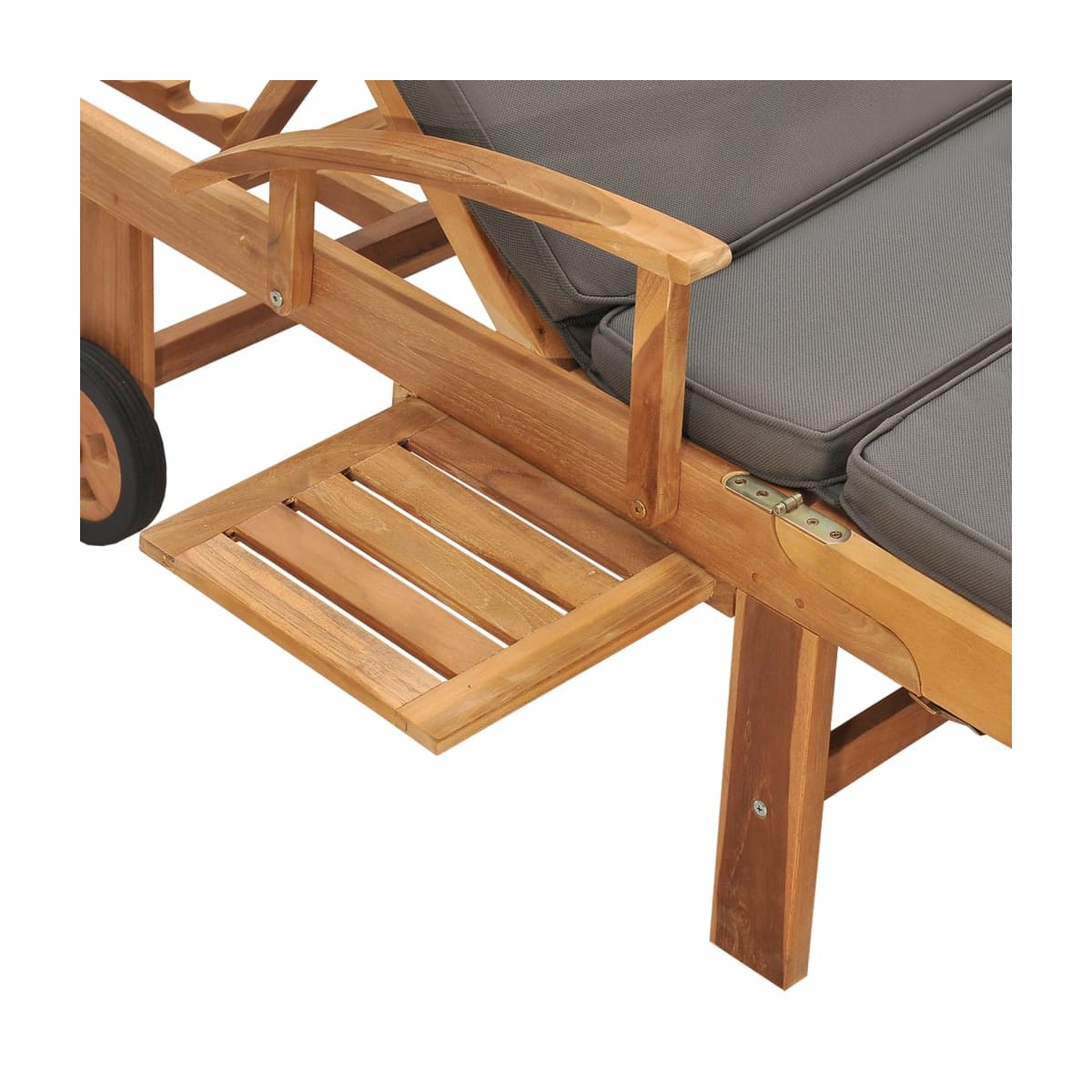 Estas clásica tumbona de teca tiene un atractivo diseño con listones y añadirá un encantador toque rústico a tu jardín, patio, piscina o zona al aire libre. Hecha con madera dura de teca muy duradera, este mueble de teca ha sido curado, secado en horno y luego lijado finamente para darle una apariencia muy suave. La madera de teca es conocida por su excepcional resistencia a la fuerza y al clima, por lo que es mucho más adecuada para muebles de jardín que cualquier otro tipo de madera. La madera de teca es la elección perfecta si deseas adquirir un mueble de jardín duradero. Al producto se le ha aplicado un bonito acabado para dar a la madera un color cálido. La tumbona está equipada con 2 ruedas, que se pueden mover fácilmente. El cojín incluido hace que la tumbona sea aún más cómoda. Cuenta con una cómoda mesa deslizante en la que puedes tener a mano el teléfono, las gafas de sol, la bebida y otros objetos pequeños. El respaldo puede ajustarse en 3 posiciones, desde sentarse completamente erguido hasta acostarse completamente plano. El reposapiés también es ajustable. ¡Descansa y disfruta del sol en esta encantadora tumbona!