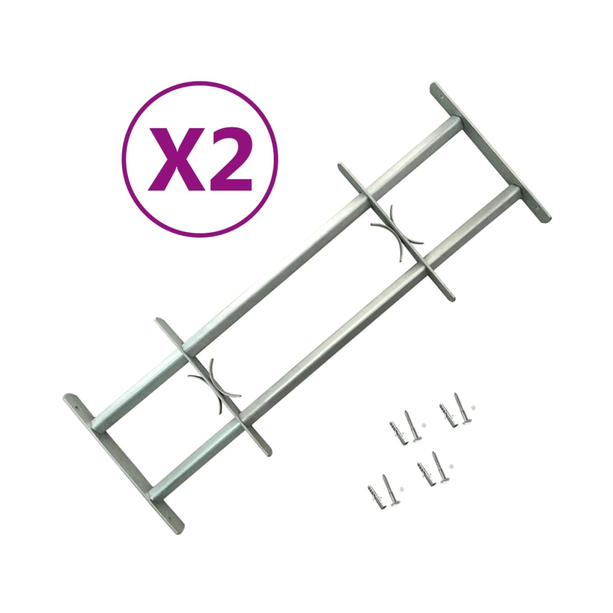 Este conjunto de 2 rejas de seguridad se fabrican con un alto nivel para aumentar la seguridad de tu casa u oficina. Hecha de acero galvanizado macizo, esta rejilla de seguridad con 2 barras transversales es robusta y duradera, para proteger eficazmente su propiedad contra robos. Con los elementos decorativos, la rejilla de la ventana también agrega un toque de estilo a tu casa. Esta reja de seguridad se puede instalar horizontalmente con su ajuste en ancho de 700-1050 mm para adaptarse a una variedad de ventanas. Nuestra reja para ventana no solo es una opción de alta seguridad, sino también una pieza de artesanía. La entrega también incluye accesorios de montaje.