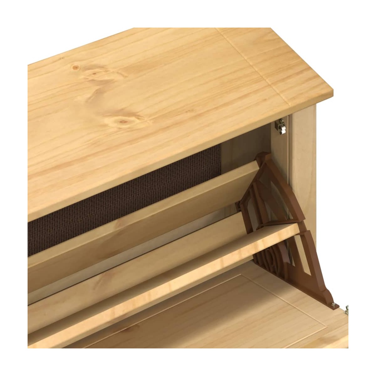 Con este zapatero de madera, puedes guardar tus zapatos de manera efectiva y también agregar una decoración práctica a tu hogar. Madera maciza de pino: La madera maciza de pino es un bonito material natural. La madera de pino tiene vetas rectas, y los nudos dan al material su distintivo aspecto rústico. Hecho de madera maciza de pino, el mueble zapatero es estable y duradero.Amplio espacio de almacenaje: El zapatero tiene 1 cajón abatible con 2 filas de huecos cada uno, por lo que proporciona un amplio espacio de almacenaje para mantener los zapatos y otros objetos bien organizados.Parte superior resistente: La parte superior del organizador de zapatos también se puede utilizar para exhibir tus objetos decorativos favoritos.Tiradores de metal: El zapatero viene con tiradores metálicos que facilitan la apertura y el cierre del cajón además de añadir un toque de belleza.