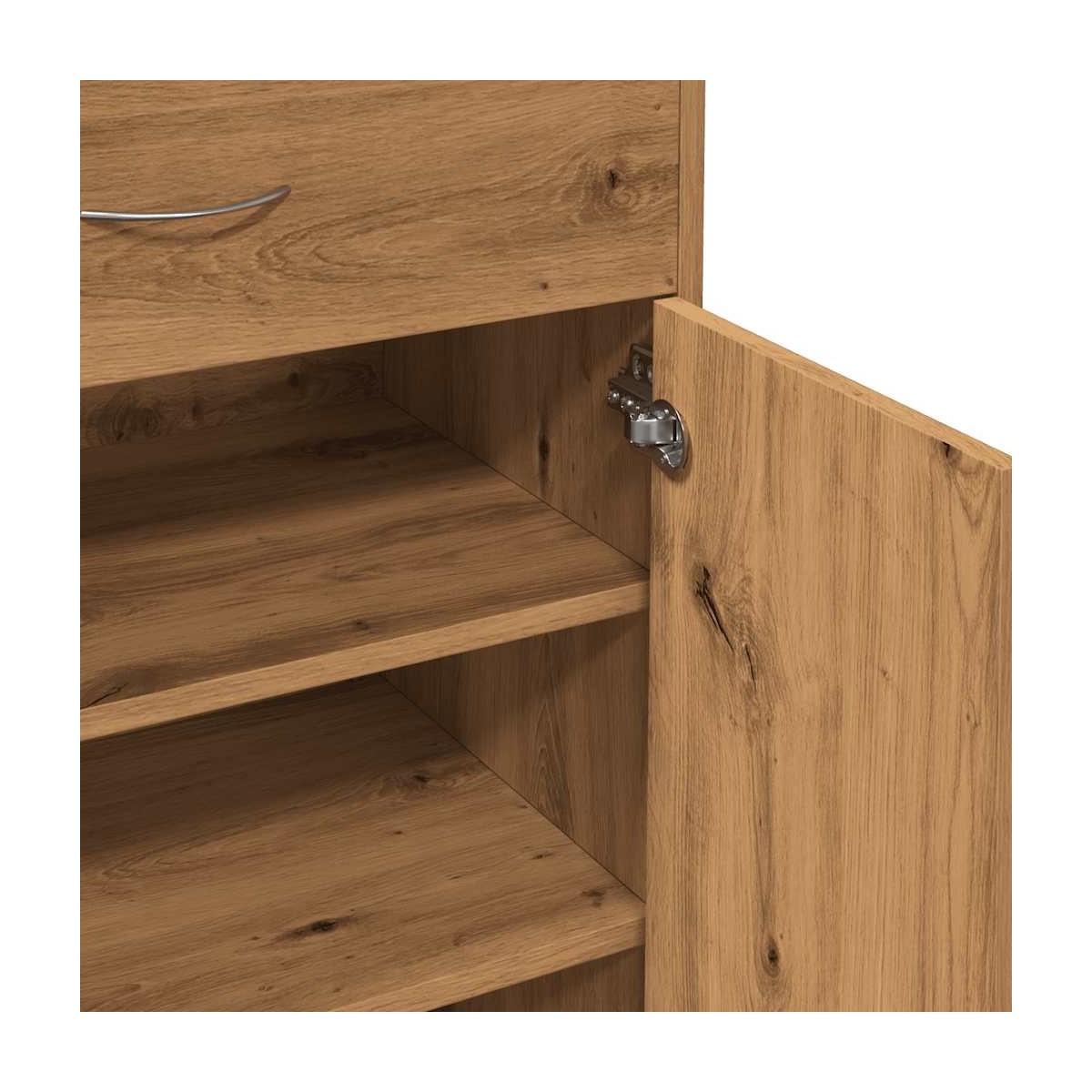Con este armario zapatero, ¡nunca más te molestarán los zapatos desperdigados por toda la casa! Material estable y duradero: La madera de ingeniería es un material duradero y estable con una superficie lisa que es resistente a la humedad, la deformación y la rotura, lo que la convierte en una opción fiable para una variedad de proyectos.Amplio espacio de almacenamiento: El organizador de zapatos tiene 4 estantes, lo que proporciona un amplio espacio para el almacenamiento de zapatos. Con este práctico organizador de zapatos, ya no te molestarán los zapatos que abarrotan el suelo.Con puertas: El estante para zapatos con puertas puede mantener tus zapatos fuera de la vista, evitando que lo zapatos cojan polvoPráctica parte superior: El robusto estante superior del zapatero es ideal para exponer objetos decorativos, marcos de fotos o guardar al alcance de la mano objetos como llaves o carteras.Fácil de mantener: Gracias a su superficie lisa, el soporte para zapatos es fácil de limpiar con un paño húmedo y requiere menos mantenimiento. Advertencia:Para evitar que vuelque, este producto debe usarse con el dispositivo de fijación a la pared suministrado.