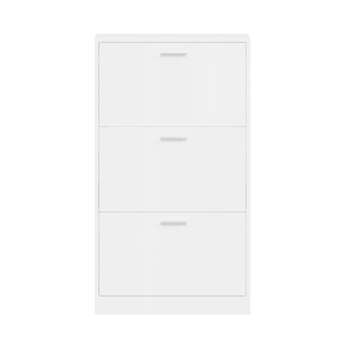 Este mueble zapatero, con un diseño moderno y elegante, es una excelente pieza de mobiliario para guardar el calzado de forma organizada. Es adecuado para el recibidor, el pasillo, el salón, el dormitorio y otras estancias. Material duradero: La madera contrachapada tiene una calidad excepcional, con una superficie lisa y también cuenta con fuerza, estabilidad y resistencia a la humedad.Amplio espacio de almacenaje: Esta estantería para zapatos cuenta con 3 cajones, que proporcionan un amplio espacio de almacenamiento para mantener el calzado organizado y al alcance.Diseño de cajón abatible: Con el diseño de cajón abatible, este armario zapatero es fácil de abrir y cerrar. Nota:Cada producto viene con un manual de montaje en la caja para facilitar el montaje. Advertencia:Para evitar el vuelco, este producto debe usarse con el dispositivo provisto para fijarlo a la pared.