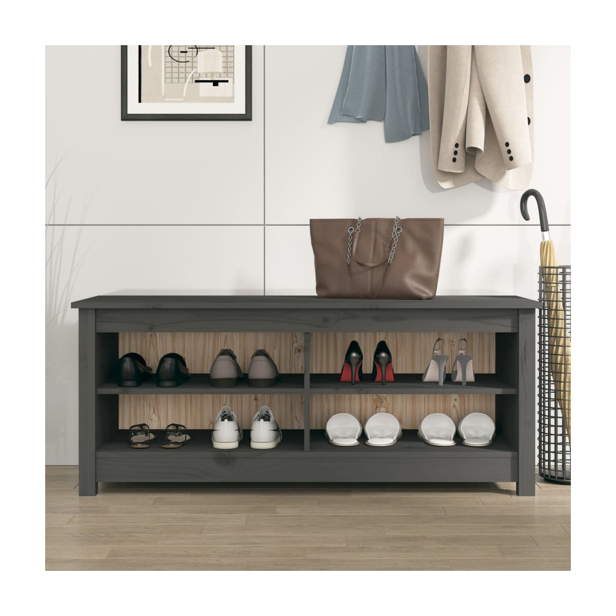 Este moderno banco zapatero es un lugar muy práctico para guardar los zapatos de forma ordenada. Madera de pino maciza: La madera de pino maciza es un bonito material natural. La madera de pino tiene vetas rectas, y los nudos dan al material su distintivo aspecto rústico.Amplio espacio de almacenaje: Este armario zapatero tiene 4 compartimentos, que proporcionan amplio espacio de almacenaje para guardar todo tipo de zapatos.Superficie estable: El banco zapatero de madera cuenta con una superficie estable, lo que te permite sentarte mientras te pones o te quitas los zapatos con comodidad. También es adecuado para colocar tus adornos favoritos como jarrones, macetas, etc.Elegante diseño: Sin duda, este armario de zapatos con un diseño elegante aporta un toque de ambiente natural a la decoración de la casa.