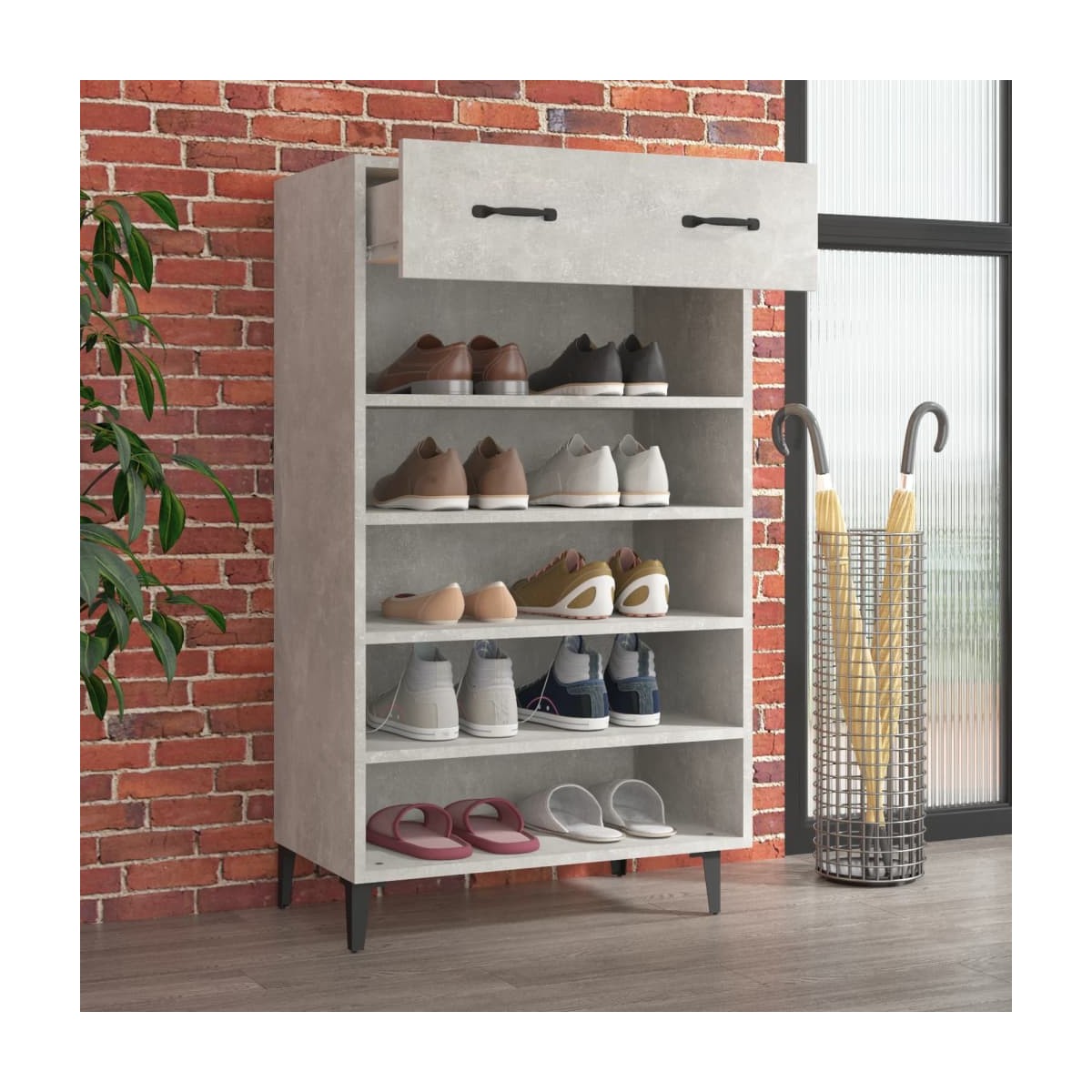 Este práctico y elegante mueble zapatero es una excelente opción para el dormitorio y el pasillo. No te volverán a molestar los zapatos desperdigados por el suelo. Material robusto: La madera contrachapada tiene una calidad excepcional, con una superficie lisa y también cuenta con fuerza, estabilidad y resistencia a la humedad.Amplio espacio de almacenamiento: Este armario zapatero con estantes y un cajón te permite mantener el calzado bien organizado y también colocar algunos objetos pequeños, como las llaves.Superficie robusta: En la superficie estable puedes poner objetos decorativos como marcos de fotos y macetas. Advertencia:Para evitar el vuelco, este producto debe usarse con el dispositivo provisto para fijarlo a la pared.Nota:Cada producto viene con un manual de montaje en la caja para facilitar el montaje.