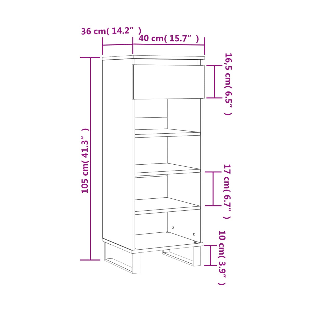 ¡Mantén los zapatos organizados y crea un ambiente ordenado con este elegante mueble zapatero! Material duradero: La madera contrachapada tiene una calidad excepcional, con una superficie lisa y también cuenta con fuerza, estabilidad y resistencia a la humedad. Hecho de madera contrachapada, el mueble zapatero es fácil de limpiar.Amplio espacio de almacenaje: Con 4 compartimentos abiertos y 1 cajón, el zapatero proporciona un espacio amplio para guardar el calzado y otras cosas.Superficie robusta: La superficie de este armario zapatero es ideal para colocar objetos decorativos, fotos o plantas.Patas de metal: Las patas de metal le dan un estilo moderno y tranquilo a la casa mientras garantizan su estabilidad. Advertencia:Para evitar que vuelque, este producto debe usarse con el dispositivo de fijación a la pared incluido.