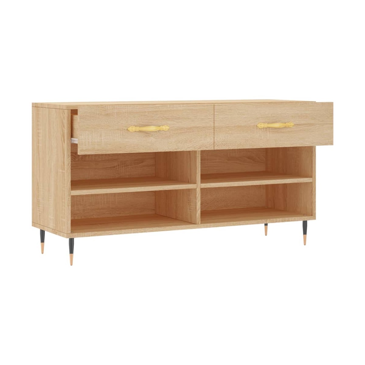 Guarda tus zapatos con este elegante y práctico banco zapatero. Es una opción perfecta para mantener ordenado el calzado. Material duradero: La madera contrachapada tiene una calidad excepcional, con una superficie lisa y también cuenta con fuerza, estabilidad y resistencia a la humedad.Amplio espacio de almacenaje: El banco zapatero tiene 2 cajones y 4 estantes que ofrecen un amplio espacio para los zapatos y otros objetos pequeños.Superficie robusta: La resistente superficie del mueble zapatero te permite sentarte cómodamente mientras te quitas o te pones los zapatos.Patas de hierro: Las patas de hierro dan un estilo industrial a la casa mientras garantizan su estabilidad. Advertencia:Para evitar que vuelque, este producto debe usarse con el dispositivo de fijación a la pared incluido.
