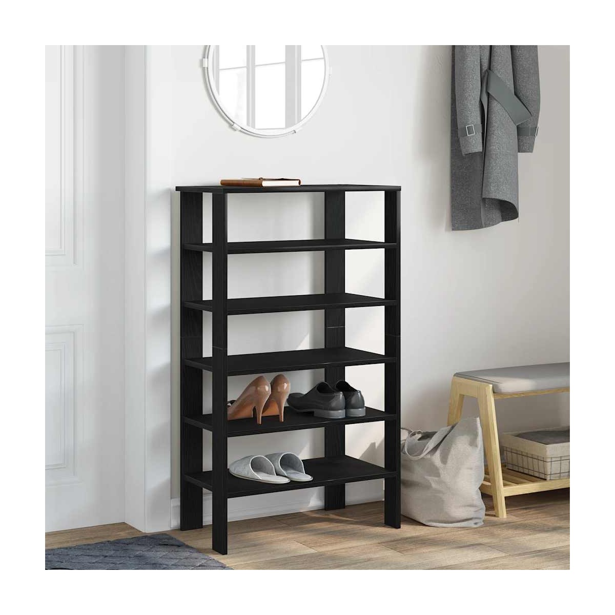 ¡Mantén los zapatos ordenados y crea un ambiente organizado con este elegante zapatero! Material estable y duradero: La madera de ingeniería es un material duradero y estable con una superficie lisa que es resistente a la humedad, la deformación y la rotura, lo que la convierte en una opción fiable para una variedad de proyectos.Amplio espacio de almacenamiento: El zapatero tiene estantes, lo que proporciona un amplio espacio para el almacenamiento de zapatos. Con este práctico organizador de zapatos, ya no te molestarán los zapatos que abarrotan el suelo.Superficie práctica: el estante superior resistente del zapatero es ideal para exhibir objetos decorativos, marcos de fotos o guardar algo como llaves o billeteras que pueda necesitar a mano.Diseño que ahorra espacio: el zapatero delgado está diseñado para adaptarse perfectamente a espacios pequeños como entradas, pasillos, vestíbulos, etc.Fácil de mantener: Gracias a su superficie lisa, la mesa se limpia fácilmente con un paño húmedo y requiere menos mantenimiento.Advertencia:Para evitar que vuelque, este producto debe usarse con el dispositivo de fijación a la pared suministrado.