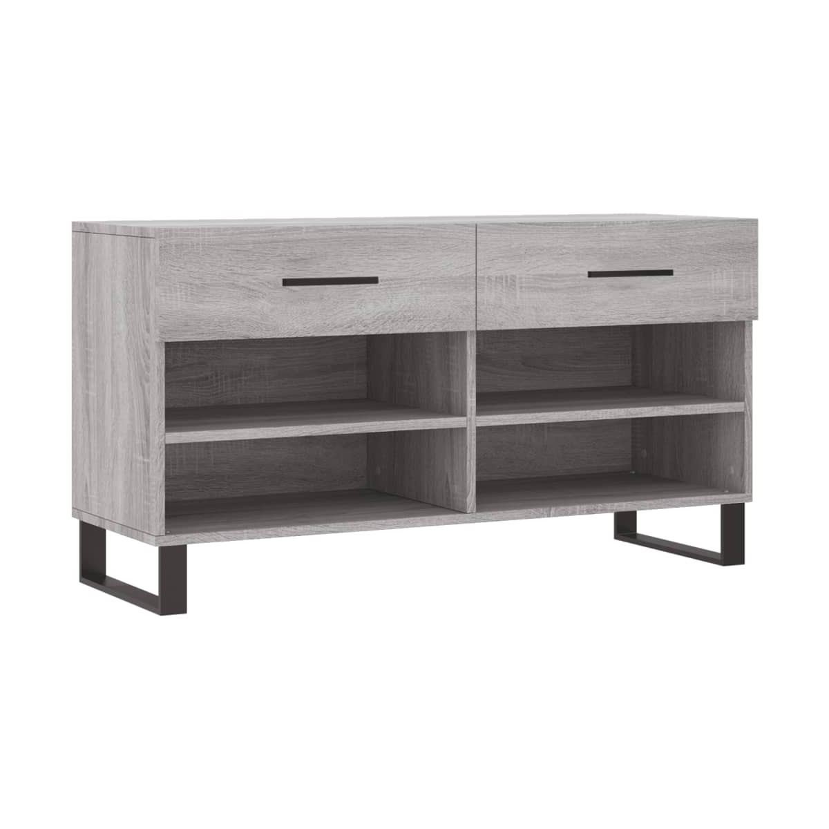 Guarda tus zapatos con este elegante y práctico banco zapatero. Es una opción perfecta para mantener ordenado el calzado. Material duradero: La madera contrachapada tiene una calidad excepcional, con una superficie lisa y también cuenta con fuerza, estabilidad y resistencia a la humedad.Amplio espacio de almacenaje: El banco zapatero tiene 2 cajones y 4 estantes que ofrecen un amplio espacio para los zapatos y otros objetos pequeños.Superficie robusta: La resistente superficie del mueble zapatero te permite sentarte cómodamente mientras te quitas o te pones los zapatos.Patas de hierro: Las patas de hierro dan un estilo industrial a la casa mientras garantizan su estabilidad. Advertencia:Para evitar que vuelque, este producto debe usarse con el dispositivo de fijación a la pared incluido.