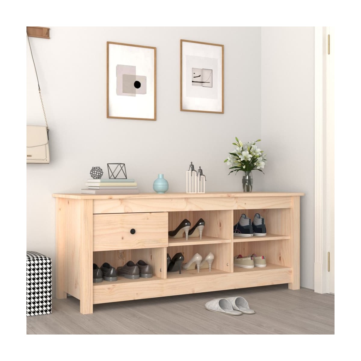 Con este delicado y robusto mueble zapatero de madera, puedes guardar el calzado de forma eficaz y también añadir un aporte práctico a la casa. Madera de pino maciza: La madera de pino maciza es un bonito material natural. La madera de pino tiene vetas rectas, y los nudos dan al material su distintivo aspecto rústico.Estructura estable: La estructura de madera garantiza su solidez y estabilidad.Amplio espacio de almacenaje: El zapatero tiene 1 cajón y 5 compartimentos, que proporcionan amplio espacio de almacenamiento para mantener los zapatos y otros objetos bien organizados.Superficie robusta: La superficie del armario zapatero también se puede utilizar para colocar tus adornos favoritos. Nota:Cada producto viene con un manual de montaje en la caja para facilitar el montaje.