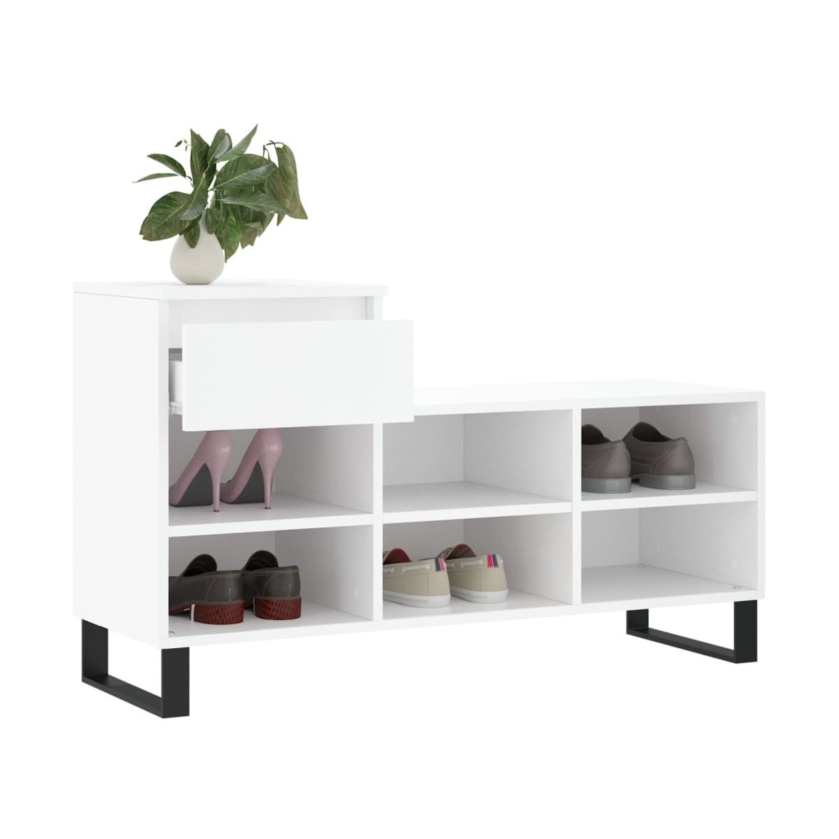 ¡Mantén los zapatos organizados y crea un ambiente ordenado con este elegante mueble zapatero! Material duradero: La madera contrachapada tiene una calidad excepcional, con una superficie lisa y también cuenta con fuerza, estabilidad y resistencia a la humedad. Hecho de madera contrachapada, el mueble zapatero es fácil de limpiar.Amplio espacio de almacenaje: El zapatero tiene 1 cajón y 6 compartimentos, que proporcionan amplio espacio de almacenamiento para mantener los zapatos y otros objetos bien organizados.Superficie robusta: La superficie de este armario zapatero es ideal para colocar objetos decorativos, fotos o plantas.Instalación flexible: El cajón se puede instalar a la derecha o la izquierda de forma flexible.Patas de metal: Las patas de metal le dan un estilo moderno y tranquilo a la casa mientras garantizan su estabilidad. Advertencia:Para evitar que vuelque, este producto debe usarse con el dispositivo de fijación a la pared incluido.