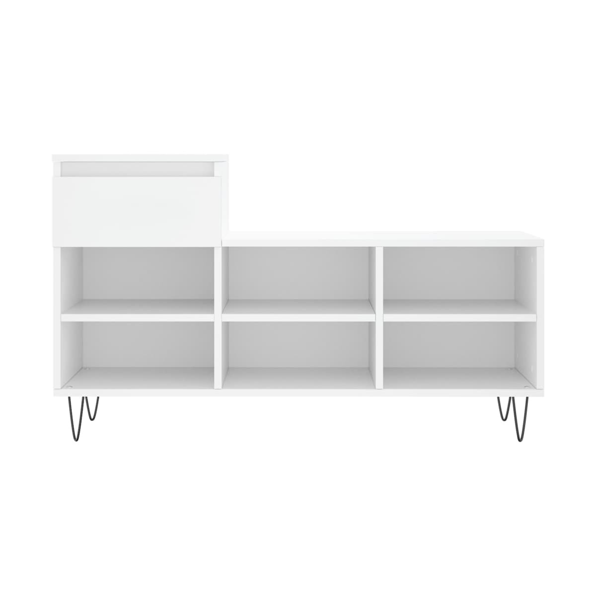 ¡Mantén los zapatos organizados y crea un ambiente ordenado con este elegante mueble zapatero! Material duradero: La madera contrachapada tiene una calidad excepcional, con una superficie lisa y también cuenta con fuerza, estabilidad y resistencia a la humedad. Hecho de madera contrachapada, el mueble zapatero es fácil de limpiar.Amplio espacio de almacenaje: El zapatero tiene 1 cajón y 6 compartimentos, que proporcionan amplio espacio de almacenamiento para mantener los zapatos y otros objetos bien organizados.Superficie robusta: La superficie de este armario zapatero es ideal para colocar objetos decorativos, fotos o plantas.Instalación flexible: El cajón se puede instalar a la derecha o la izquierda de forma flexible.Patas de metal: Las patas de metal le dan un estilo moderno y tranquilo a la casa mientras garantizan su estabilidad. Advertencia:Para evitar que vuelque, este producto debe usarse con el dispositivo de fijación a la pared incluido.
