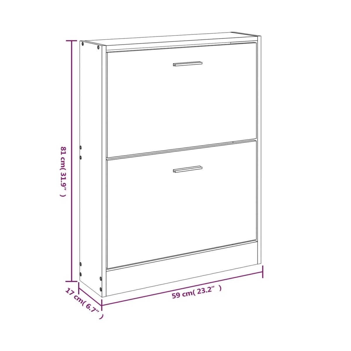 Este mueble zapatero, con un diseño moderno y elegante, es una excelente pieza de mobiliario para guardar el calzado de forma organizada. Es adecuado para el recibidor, el pasillo, el salón, el dormitorio y otras estancias. Material duradero: La madera contrachapada tiene una calidad excepcional, con una superficie lisa y también cuenta con fuerza, estabilidad y resistencia a la humedad.Amplio espacio de almacenaje: Esta estantería para zapatos cuenta con 2 cajones, que proporcionan un amplio espacio de almacenamiento para mantener el calzado organizado y al alcance.Diseño de cajón abatible: Con el diseño de cajón abatible, este armario zapatero es fácil de abrir y cerrar. Nota:Cada producto viene con un manual de montaje en la caja para facilitar el montaje. Advertencia:Para evitar el vuelco, este producto debe usarse con el dispositivo provisto para fijarlo a la pared.