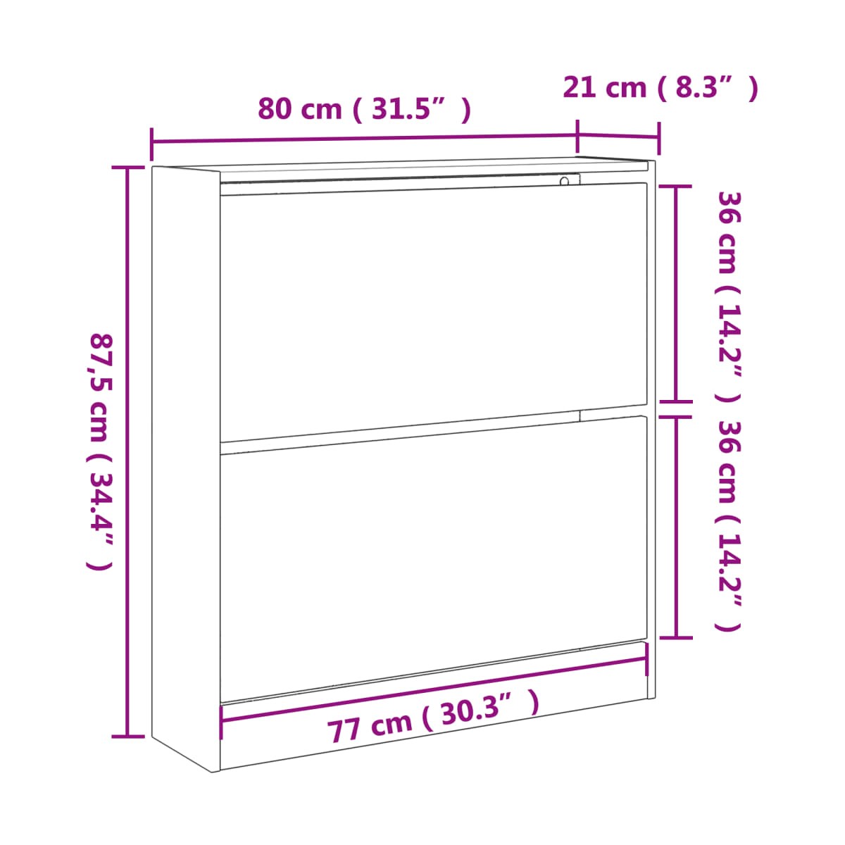 - Dimensiones: 80 x 21 x 87,5 cm (ancho x profundo x alto)