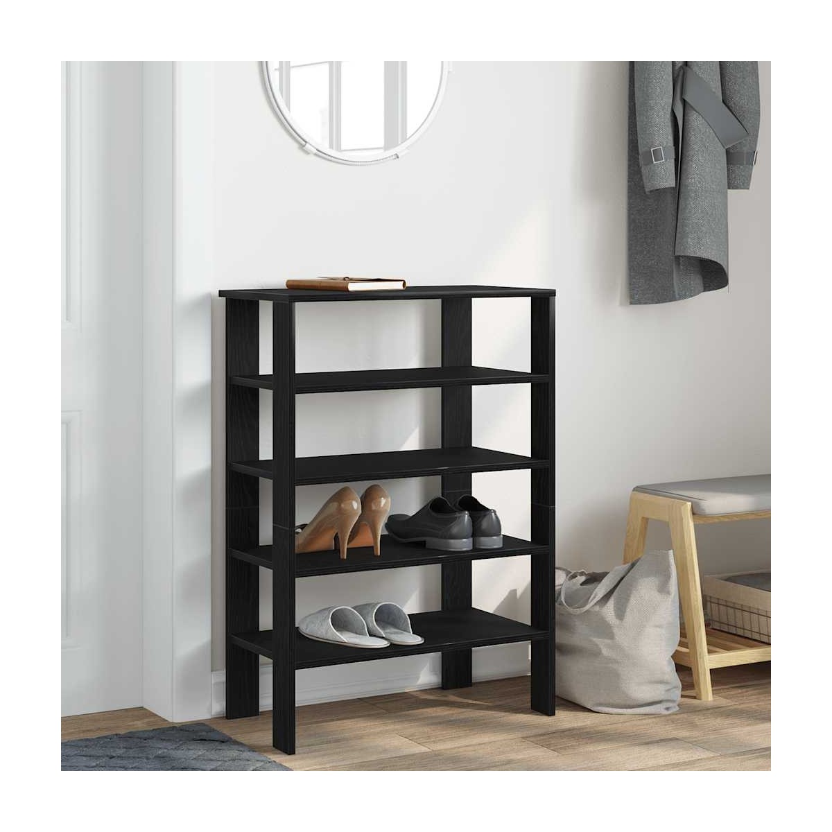 ¡Mantén los zapatos ordenados y crea un ambiente organizado con este elegante zapatero! Material estable y duradero: La madera de ingeniería es un material duradero y estable con una superficie lisa que es resistente a la humedad, la deformación y la rotura, lo que la convierte en una opción fiable para una variedad de proyectos.Amplio espacio de almacenamiento: El zapatero tiene estantes, lo que proporciona un amplio espacio para el almacenamiento de zapatos. Con este práctico organizador de zapatos, ya no te molestarán los zapatos que abarrotan el suelo.Superficie práctica: el estante superior resistente del zapatero es ideal para exhibir objetos decorativos, marcos de fotos o guardar algo como llaves o billeteras que pueda necesitar a mano.Diseño que ahorra espacio: el zapatero delgado está diseñado para adaptarse perfectamente a espacios pequeños como entradas, pasillos, vestíbulos, etc.Fácil de mantener: Gracias a su superficie lisa, la mesa se limpia fácilmente con un paño húmedo y requiere menos mantenimiento. Advertencia:Para evitar que vuelque, este producto debe usarse con el dispositivo de fijación a la pared suministrado.