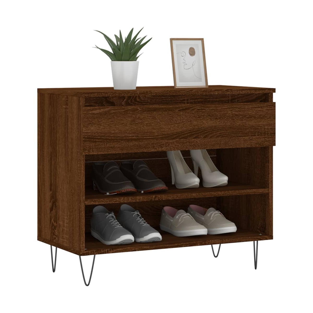 ¡Mantén los zapatos organizados y crea un ambiente ordenado con este elegante mueble zapatero! Material duradero: La madera contrachapada tiene una calidad excepcional, con una superficie lisa y también cuenta con fuerza, estabilidad y resistencia a la humedad. Hecho de madera contrachapada, el mueble zapatero es fácil de limpiar.Amplio espacio de almacenaje: El zapatero tiene 1 cajón y 2 compartimentos abiertos, que proporcionan amplio espacio de almacenamiento para mantener bien organizados los zapatos y otros objetos.Superficie robusta: La superficie de este armario zapatero es ideal para colocar objetos decorativos, fotos o plantas.Patas de metal: Las patas de metal le dan un estilo moderno y tranquilo a la casa mientras garantizan su estabilidad. Advertencia:Para evitar que vuelque, este producto debe usarse con el dispositivo de fijación a la pared incluido.