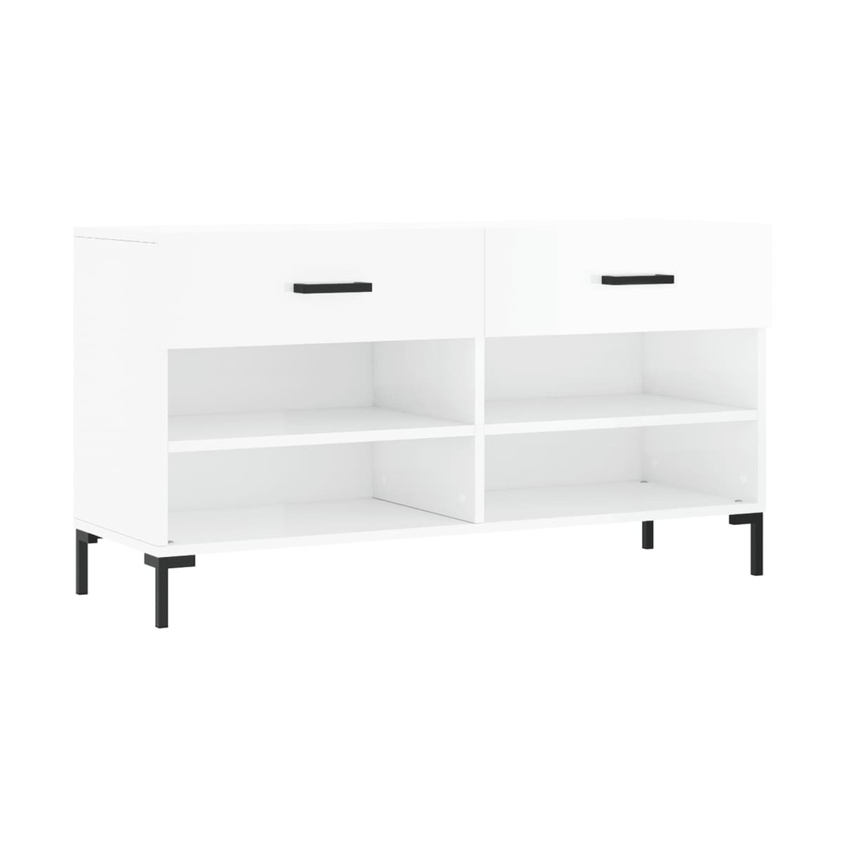 Guarda tus zapatos con este elegante y práctico banco zapatero. Es una opción perfecta para mantener ordenado el calzado. Material duradero: La madera contrachapada tiene una calidad excepcional, con una superficie lisa y también cuenta con fuerza, estabilidad y resistencia a la humedad.Amplio espacio de almacenaje: El banco zapatero tiene 2 cajones y 4 estantes que ofrecen un amplio espacio para los zapatos y otros objetos pequeños.Superficie robusta: La resistente superficie del mueble zapatero te permite sentarte cómodamente mientras te quitas o te pones los zapatos.Patas de hierro: Las patas de hierro dan un estilo industrial a la casa mientras garantizan su estabilidad. Advertencia:Para evitar que vuelque, este producto debe usarse con el dispositivo de fijación a la pared incluido.