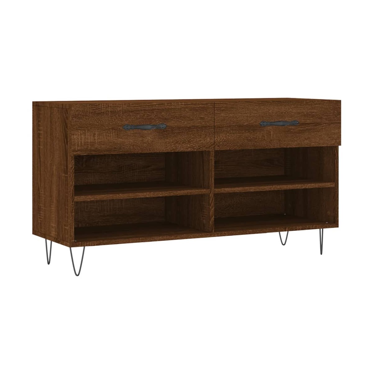 Guarda tus zapatos con este elegante y práctico banco zapatero. Es una opción perfecta para mantener ordenado el calzado. Material duradero: La madera contrachapada tiene una calidad excepcional, con una superficie lisa y también cuenta con fuerza, estabilidad y resistencia a la humedad.Amplio espacio de almacenaje: El banco zapatero tiene 2 cajones y 4 estantes que ofrecen un amplio espacio para los zapatos y otros objetos pequeños.Superficie robusta: La resistente superficie del mueble zapatero te permite sentarte cómodamente mientras te quitas o te pones los zapatos.Patas de hierro: Las patas de hierro dan un estilo industrial a la casa mientras garantizan su estabilidad. Advertencia:Para evitar que vuelque, este producto debe usarse con el dispositivo de fijación a la pared incluido.