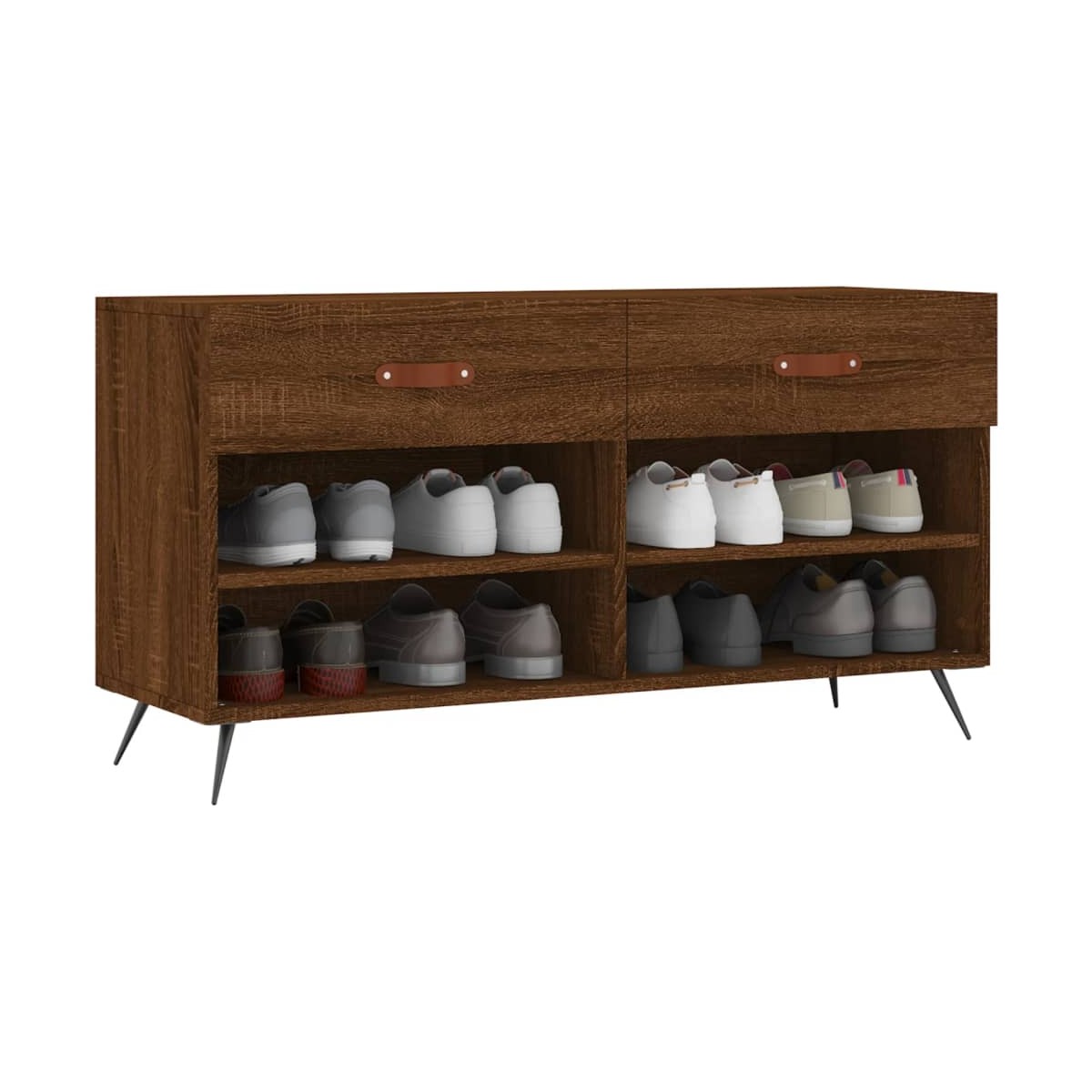 Guarda tus zapatos con este elegante y práctico banco zapatero. Es una opción perfecta para mantener ordenado el calzado. Material duradero: La madera contrachapada tiene una calidad excepcional, con una superficie lisa y también cuenta con fuerza, estabilidad y resistencia a la humedad.Amplio espacio de almacenaje: El banco zapatero tiene 2 cajones y 4 estantes que ofrecen un amplio espacio para los zapatos y otros objetos pequeños.Superficie robusta: La resistente superficie del mueble zapatero te permite sentarte cómodamente mientras te quitas o te pones los zapatos.Patas de hierro: Las patas de hierro dan un estilo industrial a la casa mientras garantizan su estabilidad. Advertencia:Para evitar que vuelque, este producto debe usarse con el dispositivo de fijación a la pared incluido.