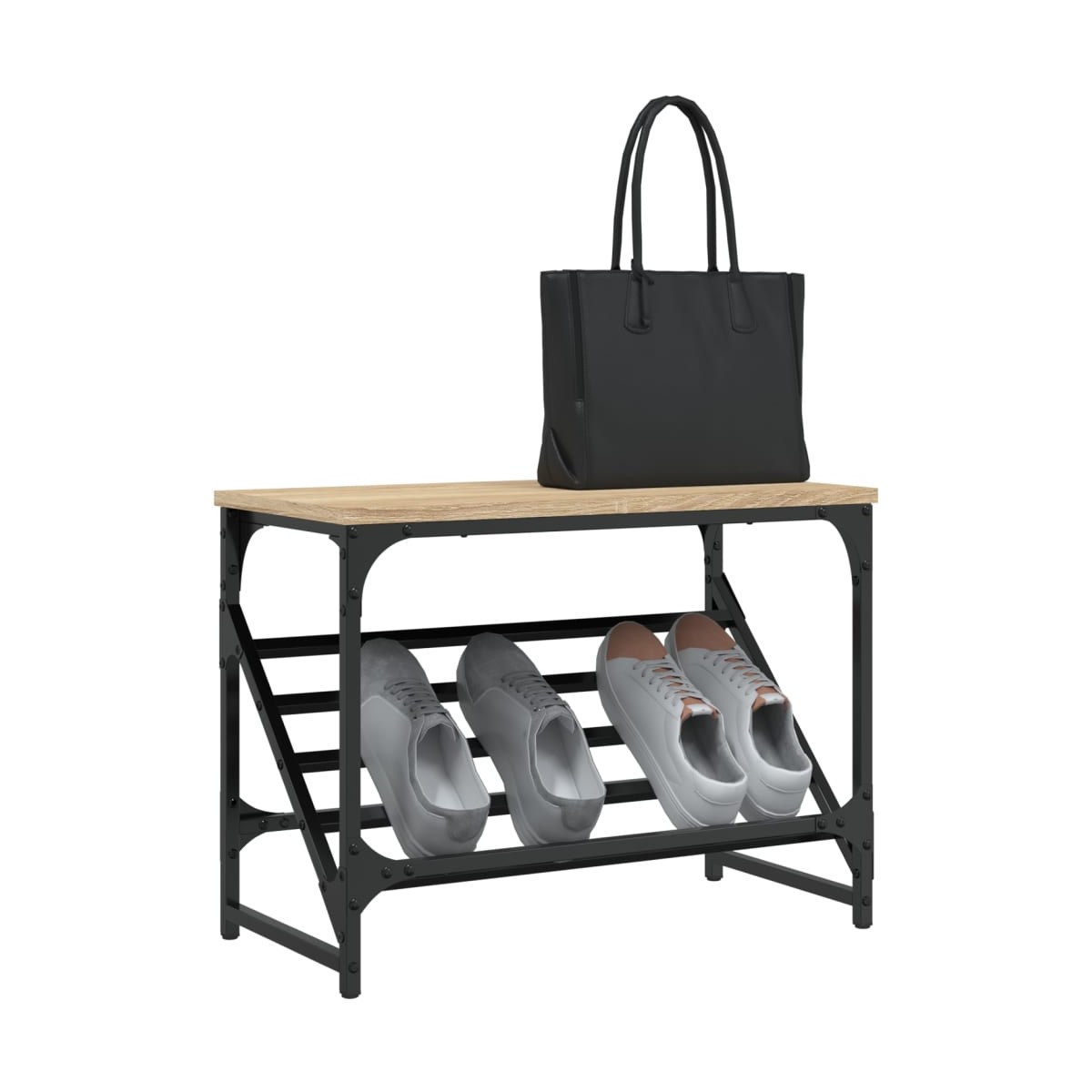 Este zapatero clásico para la entrada es muy bonito y puede hacer que tu habitación esté más organizada. Material duradero: La madera de ingeniería tiene una calidad excepcional, con una superficie lisa y también cuenta con fuerza, estabilidad y resistencia a la humedad.Estructura estable: La base de acero con recubrimiento en polvo negro proporciona estabilidad y robustez adicionales para este zapatero.Amplio espacio de almacenamiento: Este zapatero tiene un estante inclinado que brinda espacio de almacenamiento para que puedas organizar los zapatos de manera ordenada.Parte superior resistente: Puedes colocar tu bolso y artículos decorativos favoritos en la parte superior de este organizador de zapatos.