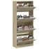 ¡Mantén tus zapatos bien organizados y siempre a mano con este zapatero! Material duradero: La madera de ingeniería tiene una calidad excepcional, con una superficie lisa y también cuenta con fuerza, estabilidad y resistencia a la humedad.Diseño que ahorra espacio: El zapatero hace un uso óptimo del espacio vertical y ocupa poco espacio en el suelo, lo que es especialmente adecuado para habitaciones pequeñas.Amplio espacio de almacenamiento: El zapatero cuenta con cajones abatibles que mantienen tus zapatos invisibles para ofrecer una estancia limpia y ordenada.Diseño moderno: El zapatero presenta líneas limpias y un aspecto minimalista que agrega un toque moderno a tu decoración existente. Advertencia:Para evitar que vuelque, este producto debe usarse con el dispositivo de fijación a la pared incluido. Información útil:Los tornillos y los tacos para el interior de la pared no están incluidos. Recomendamos encontrar y utilizar tornillos y tacos adecuados específicamente para las paredes. Si no estás seguro, puedes consultar con un profesional. Lee y sigue cada paso de las instrucciones.