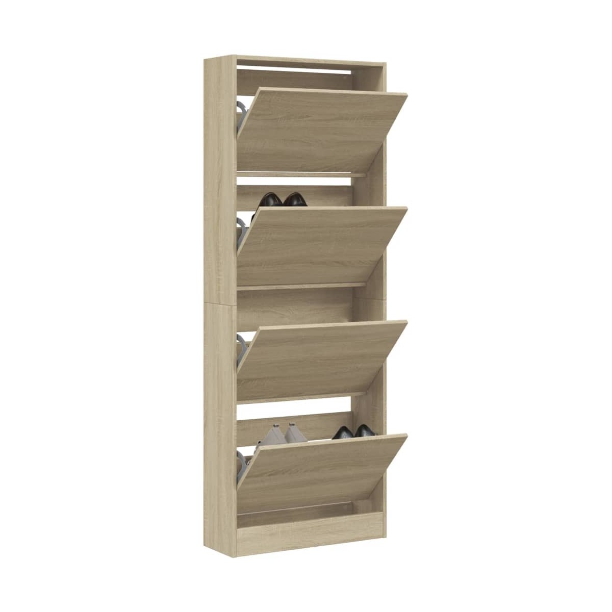 Este mueble zapatero es una excelente opción para guardar los zapatos de forma organizada, especialmente en espacios reducidos y estrechos gracias a su diseño compacto. Material duradero: La madera contrachapada tiene una calidad excepcional, con una superficie lisa, y también cuenta con fuerza, estabilidad y resistencia a la humedad.Amplio espacio de almacenamiento: Este mueble zapatero cuenta con 4 cajones abatibles que brindan un amplio espacio para mantener tus zapatos al alcance y bien organizados.Superficie práctica: La superficie robusta de este armario zapatero es ideal para colocar objetos decorativos, fotos o plantas.Diseño que ahorra espacio: El armario de almacenamiento de zapatos delgado está diseñado para adaptarse perfectamente a espacios pequeños como entrada, pasillo, guardarropa, etc. Advertencia:Para evitar que vuelque, este producto debe usarse con el dispositivo de fijación a la pared suministrado. Información útil:Los tornillos y los tacos para el interior de la pared no están incluidos. Recomendamos encontrar y utilizar tornillos y tacos adecuados específicamente para las paredes. Si no estás seguro, puedes consultar con un profesional. Lee y sigue cada paso de las instrucciones.