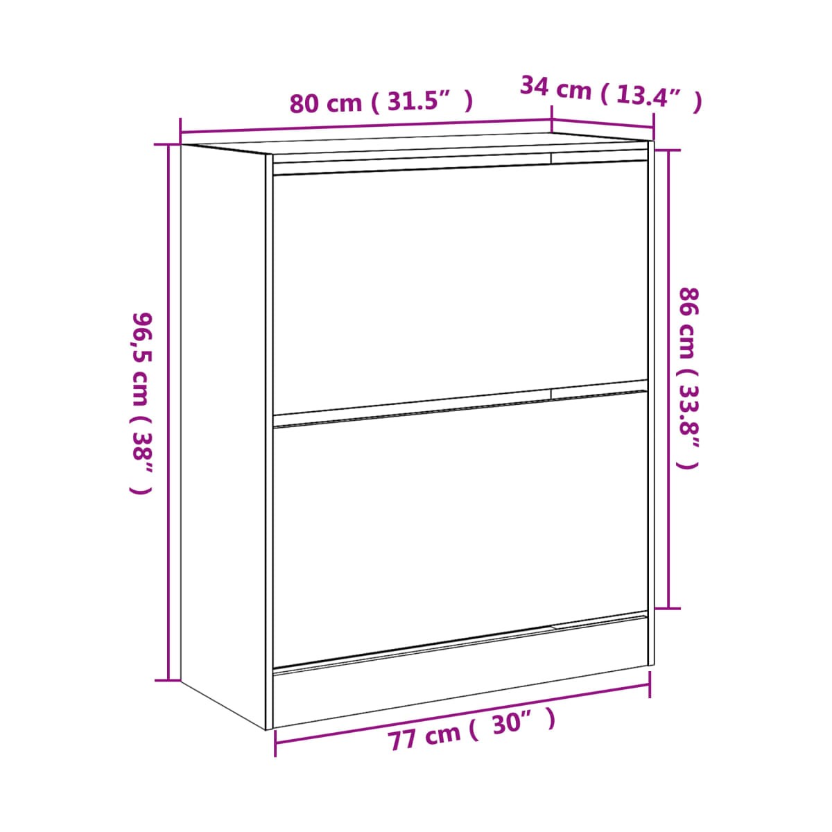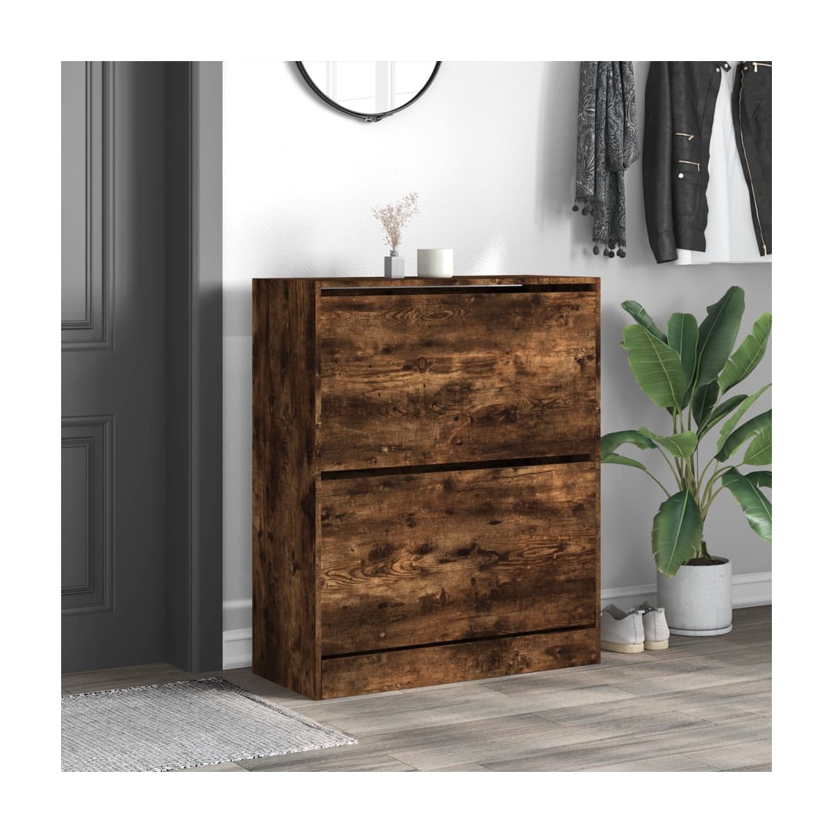 Este mueble zapatero es una excelente opción para guardar los zapatos de forma organizada, especialmente en espacios reducidos y estrechos gracias a su diseño compacto. Material duradero: La madera contrachapada tiene una calidad excepcional, con una superficie lisa, y también cuenta con fuerza, estabilidad y resistencia a la humedad.Amplio espacio de almacenaje: Esta estantería para zapatos cuenta con 2 cajones abatibles con 2 capas, que proporcionan un amplio espacio de almacenamiento para mantener el calzado organizado y al alcance.Superficie práctica: La superficie robusta de este armario zapatero es ideal para colocar objetos decorativos, fotos o plantas.Diseño que ahorra espacio: El armario de almacenamiento de zapatos delgado está diseñado para adaptarse perfectamente a espacios pequeños como entrada, pasillo, guardarropa, etc. Advertencia:Para evitar que vuelque, este producto debe usarse con el dispositivo de fijación a la pared suministrado.