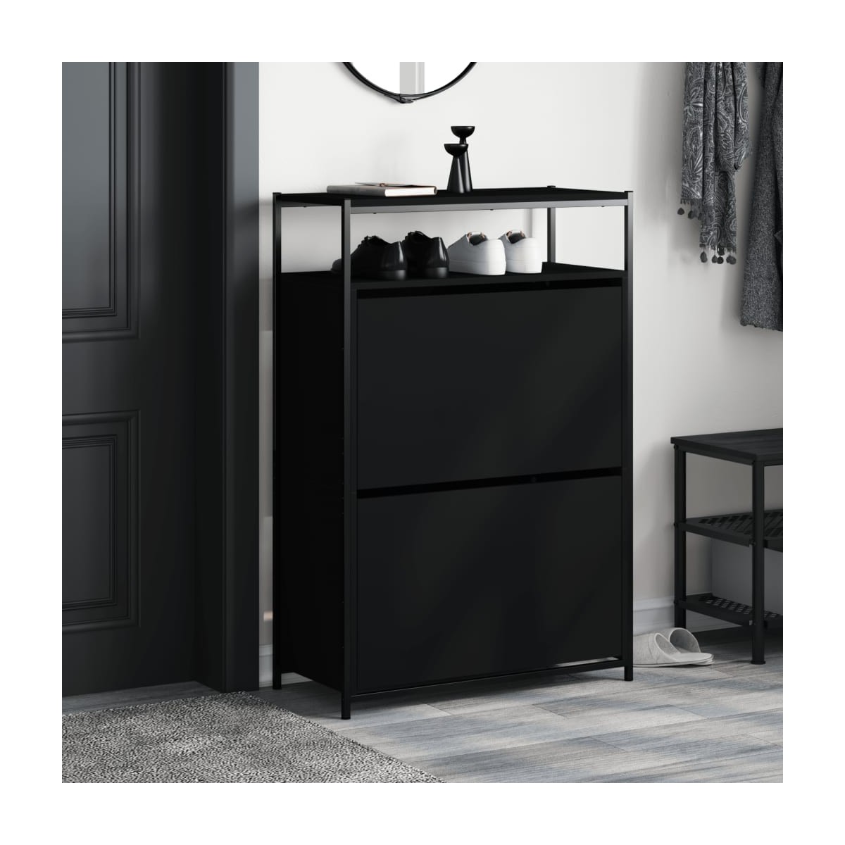Este mueble zapatero es una excelente opción para guardar los zapatos de forma organizada, especialmente en espacios reducidos y estrechos gracias a su diseño compacto. Material duradero: La madera contrachapada tiene una calidad excepcional, con una superficie lisa, y también cuenta con fuerza, estabilidad y resistencia a la humedad.Amplio espacio de almacenamiento: Este zapatero cuenta con 1 estante y 2 cajones abatibles, lo que brinda un amplio espacio para mantener tus zapatos al alcance y bien organizados.Superficie práctica: La superficie robusta de este armario zapatero es ideal para colocar objetos decorativos, fotos o plantas.Diseño que ahorra espacio: El armario de almacenamiento de zapatos delgado está diseñado para adaptarse perfectamente a espacios pequeños como entrada, pasillo, guardarropa, etc. Advertencia:Para evitar que vuelque, este producto debe usarse con el dispositivo de fijación a la pared suministrado.