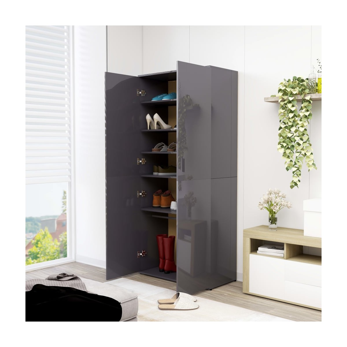 ¡Crea un entorno cálido y acogedor justo a lado de la puerta con nuestro elegante y práctico mueble zapatero! Nuestro atemporal armario zapatero supone una solución ideal para guardar calzado en tu dormitorio o recibidor. No te volverán a molestar los zapatos tirados por el suelo. Hecho de madera contrachapada robusta, este armario para la entrada es muy duradero y robusto. El mueble zapatero posee 6 estantes, que proporcionan un amplio espacio para tener bien organizado el calzado. Gracias a las 2 puertas, el zapatero protege los zapatos del polvo y los mantiene fuera de la vista. El organizador de la zapatilla también es fácil de montar. Tenga en cuenta: El panel lateral del armario consta de dos partes conectadas.