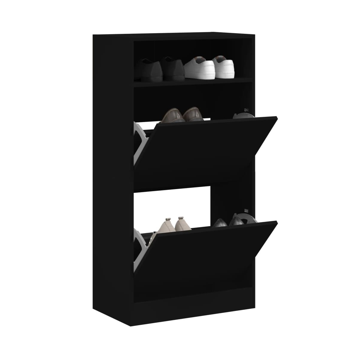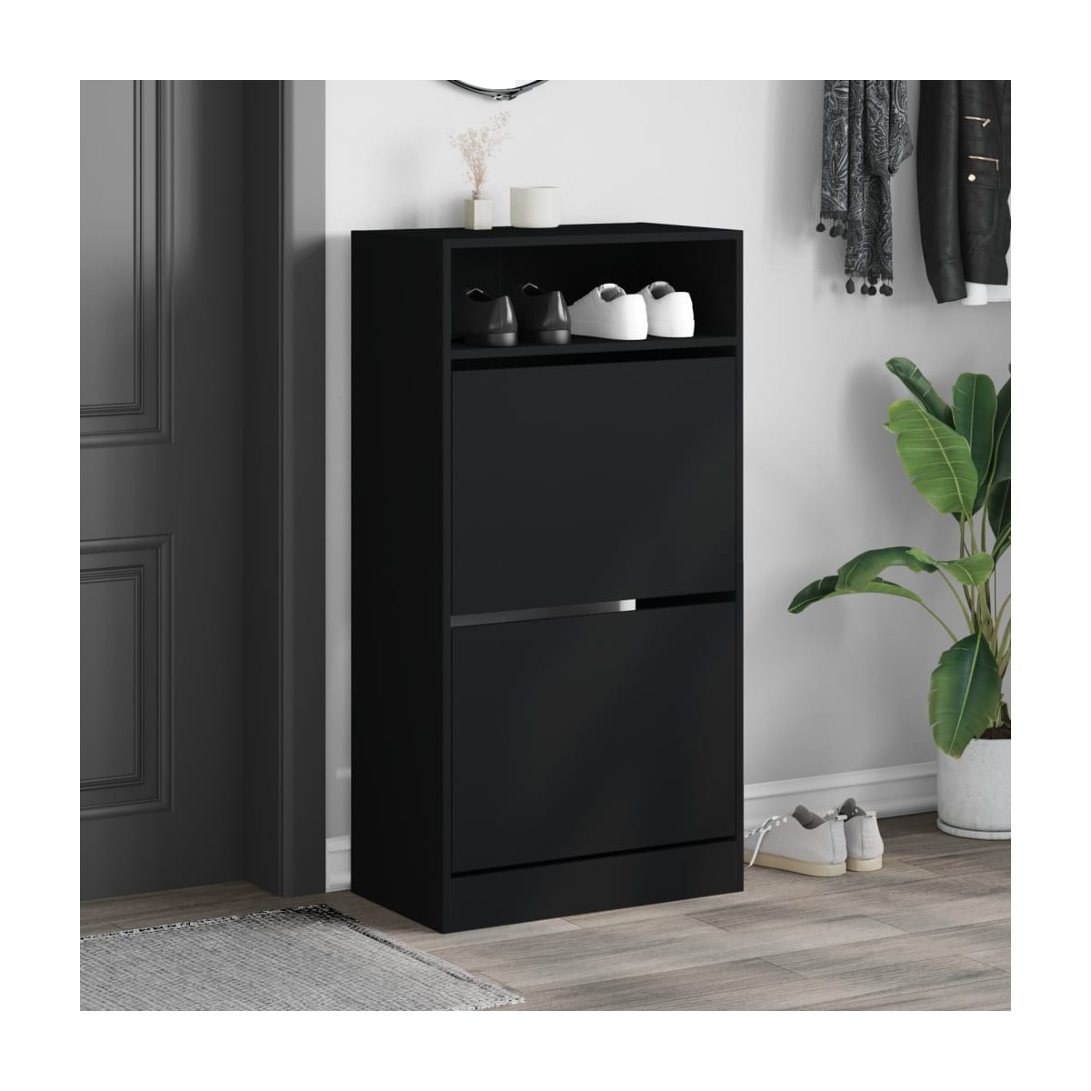 Este mueble zapatero es una excelente opción para guardar los zapatos de forma organizada, especialmente en espacios reducidos y estrechos gracias a su diseño compacto. Material duradero: La madera contrachapada tiene una calidad excepcional, con una superficie lisa, y también cuenta con fuerza, estabilidad y resistencia a la humedad.Amplio espacio de almacenamiento: Este zapatero cuenta con 1 estante y 2 cajones abatibles, lo que brinda un amplio espacio para mantener tus zapatos al alcance y bien organizados.Superficie práctica: La superficie robusta de este armario zapatero es ideal para colocar objetos decorativos, fotos o plantas.Diseño que ahorra espacio: El armario de almacenamiento de zapatos delgado está diseñado para adaptarse perfectamente a espacios pequeños como entrada, pasillo, guardarropa, etc. Advertencia:Para evitar que vuelque, este producto debe usarse con el dispositivo de fijación a la pared suministrado.