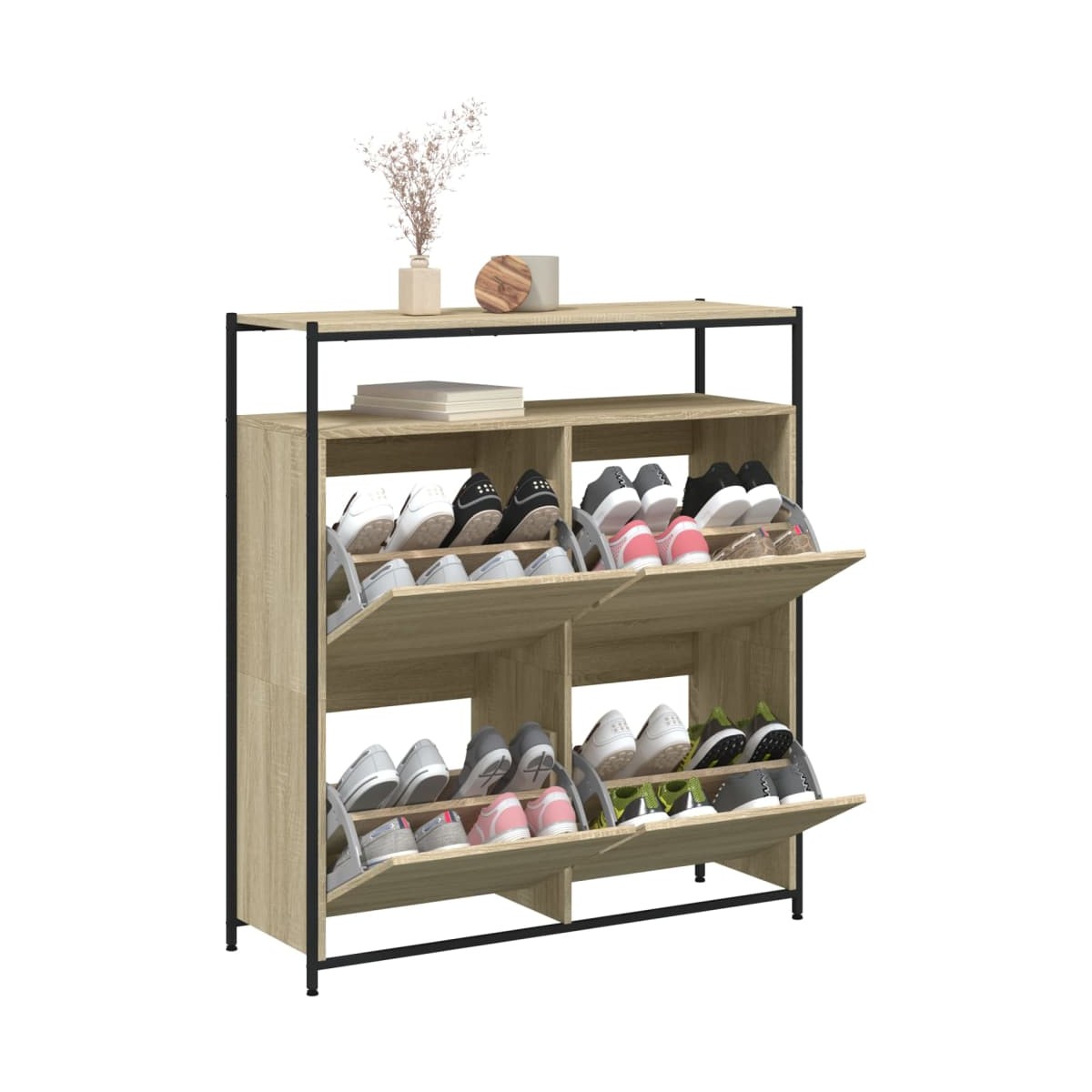 ¡Mantén tus zapatos bien organizados y siempre a mano con este zapatero! Material duradero: La madera de ingeniería tiene una calidad excepcional, con una superficie lisa y también cuenta con fuerza, estabilidad y resistencia a la humedad.Diseño que ahorra espacio: El zapatero hace un uso óptimo del espacio vertical y ocupa poco espacio en el suelo, lo que es especialmente adecuado para habitaciones pequeñas.Amplio espacio de almacenamiento: El zapatero cuenta con cajones abatibles que mantienen tus zapatos invisibles para ofrecer una estancia limpia y ordenada.Diseño moderno: El zapatero presenta líneas limpias y un aspecto minimalista que agrega un toque moderno a tu decoración existente. Advertencia:Para evitar que vuelque, este producto debe usarse con el dispositivo de fijación a la pared incluido.
