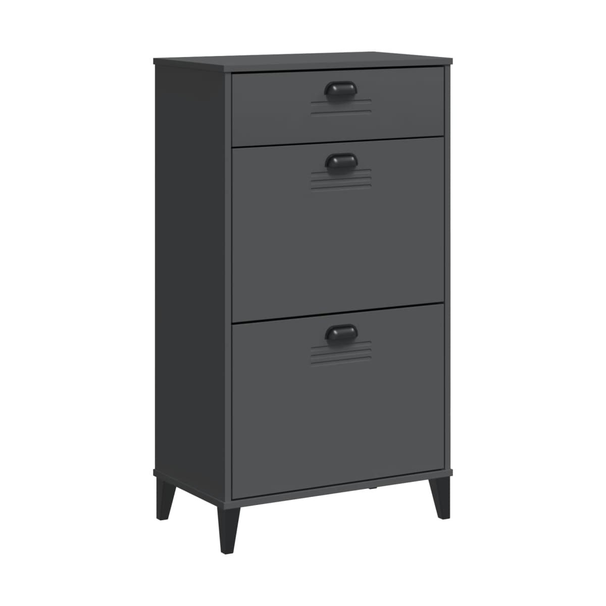 Con este zapatero de madera, puedes guardar tus zapatos de manera efectiva y también agregar una decoración práctica a tu hogar. Madera maciza de pino: La madera maciza de pino es un bonito material natural. La madera de pino tiene vetas rectas, y los nudos dan al material su distintivo aspecto rústico. Hecho de madera maciza de pino, el mueble zapatero es estable y duradero.Amplio espacio de almacenamiento: El armario para zapatos tiene 2 cajones abatibles con 2 filas de espacio para cada uno, lo que proporciona un amplio espacio de almacenamiento para mantener tus zapatos y otros artículos bien organizados.Parte superior resistente: La parte superior del organizador de zapatos también se puede utilizar para exhibir tus objetos decorativos favoritos.Práctico tirador: El zapatero viene con asas que facilitan la apertura y el cierre del armario a la vez que añaden un toque de belleza extra. Advertencia:Para evitar que vuelque, este producto debe usarse con el dispositivo de fijación a la pared suministrado.